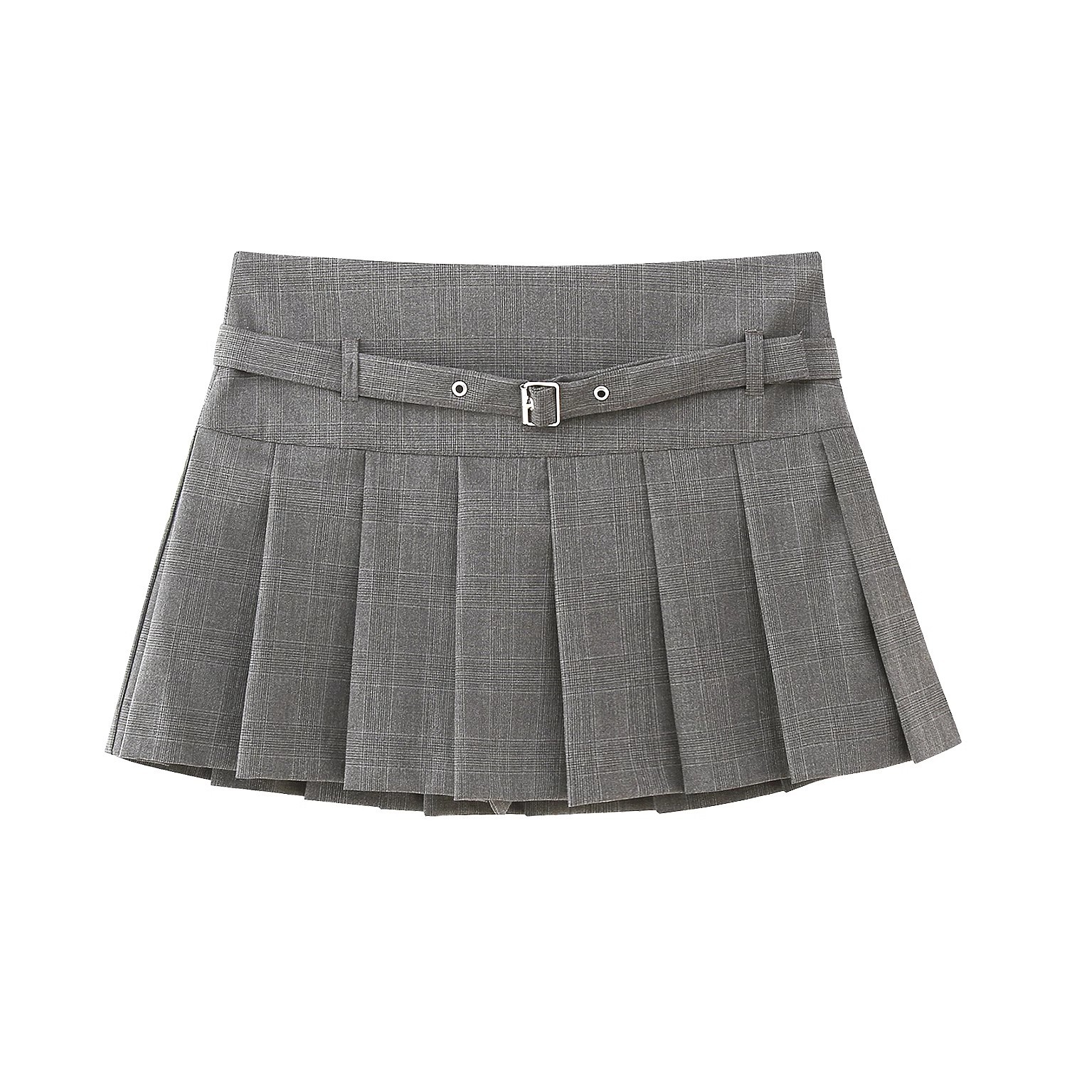 Low Waist Mini Plaid Casual Wide Pleated Culottes Skirt