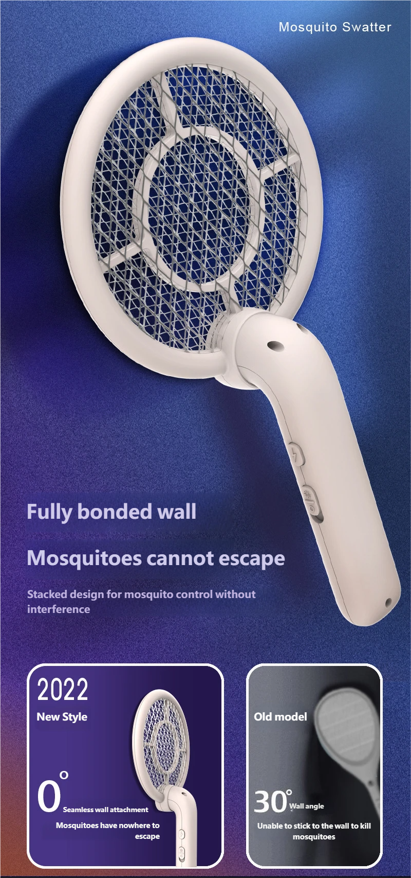 0° Flush Wall Fit Design, No Escape Zone: Innovative staggered structure allows the racket head to lie completely flat against walls, leaving zero gaps for mosquitoes to escape. Superior to old models with 30° wall-angle design.