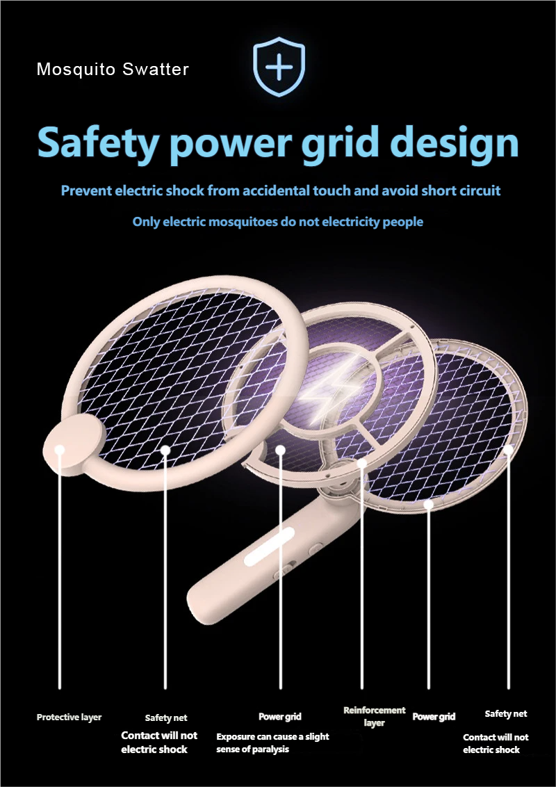 Triple Safety Protection, Safe for Humans: Features a 5-layer structure: protective layer + safety net + electric grid + reinforced layer + safety net. The outer safety net is non-electrified upon contact, while only the inner grid delivers lethal shock to insects, effectively preventing accidental electric shocks to children or users.