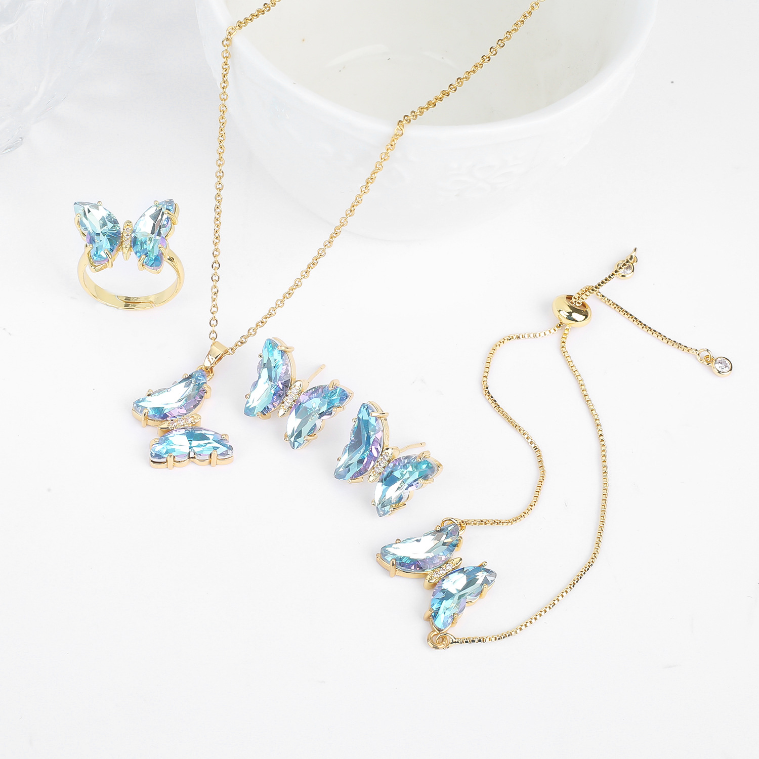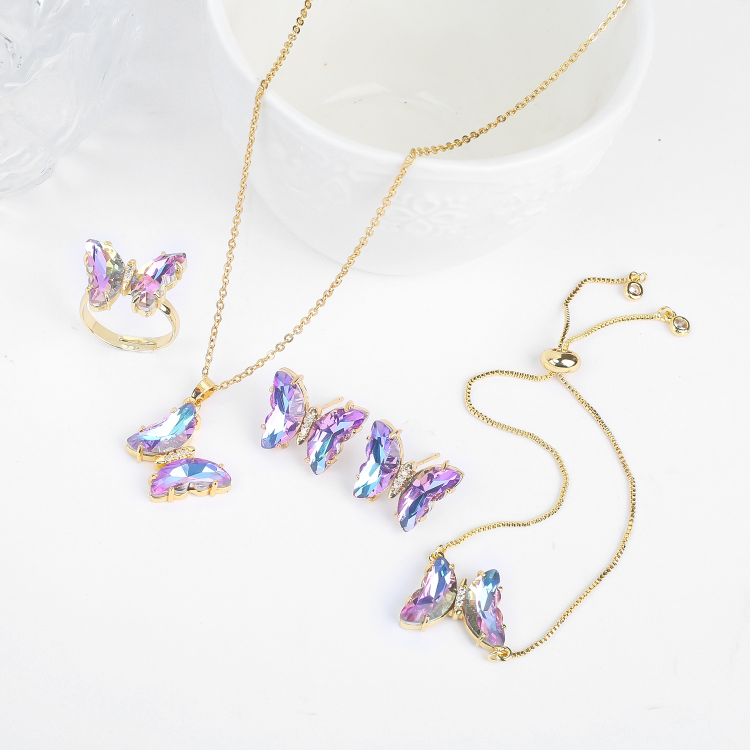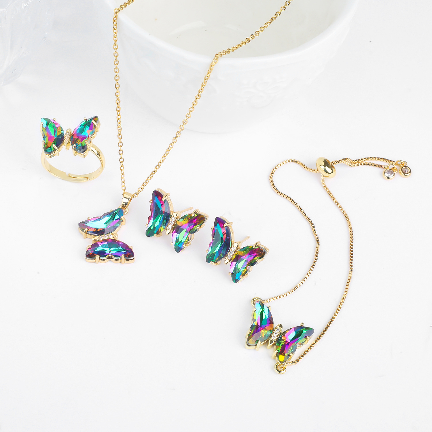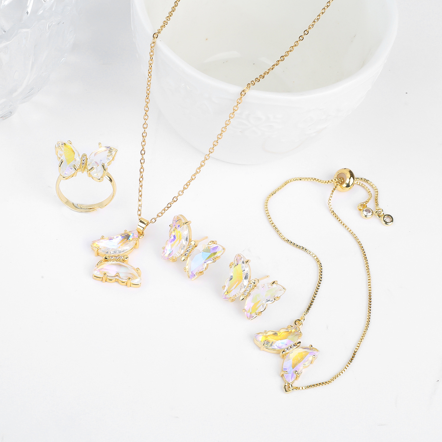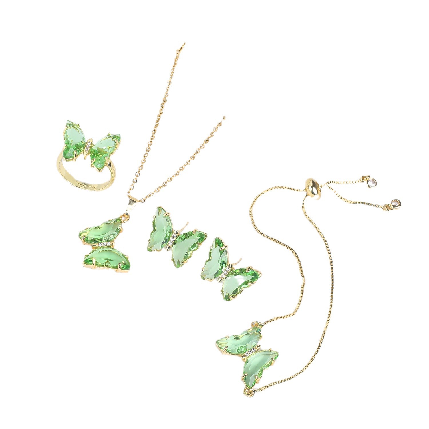 Lucky Crystal Butterfly Four-piece Suit Color Necklace