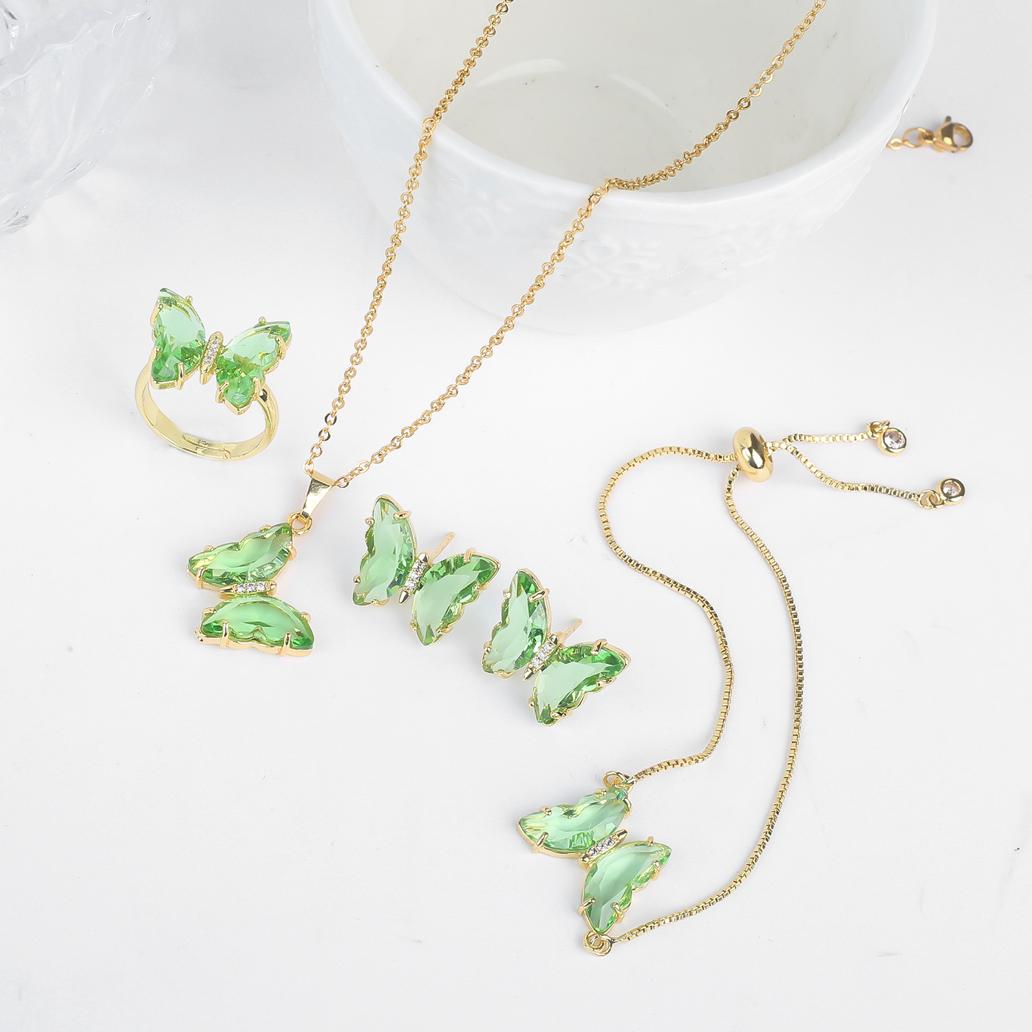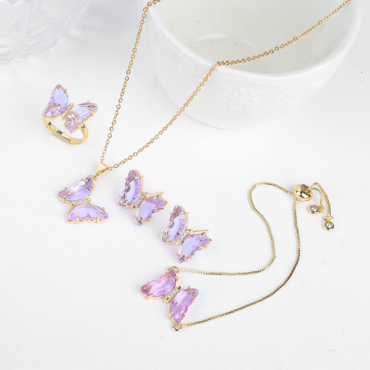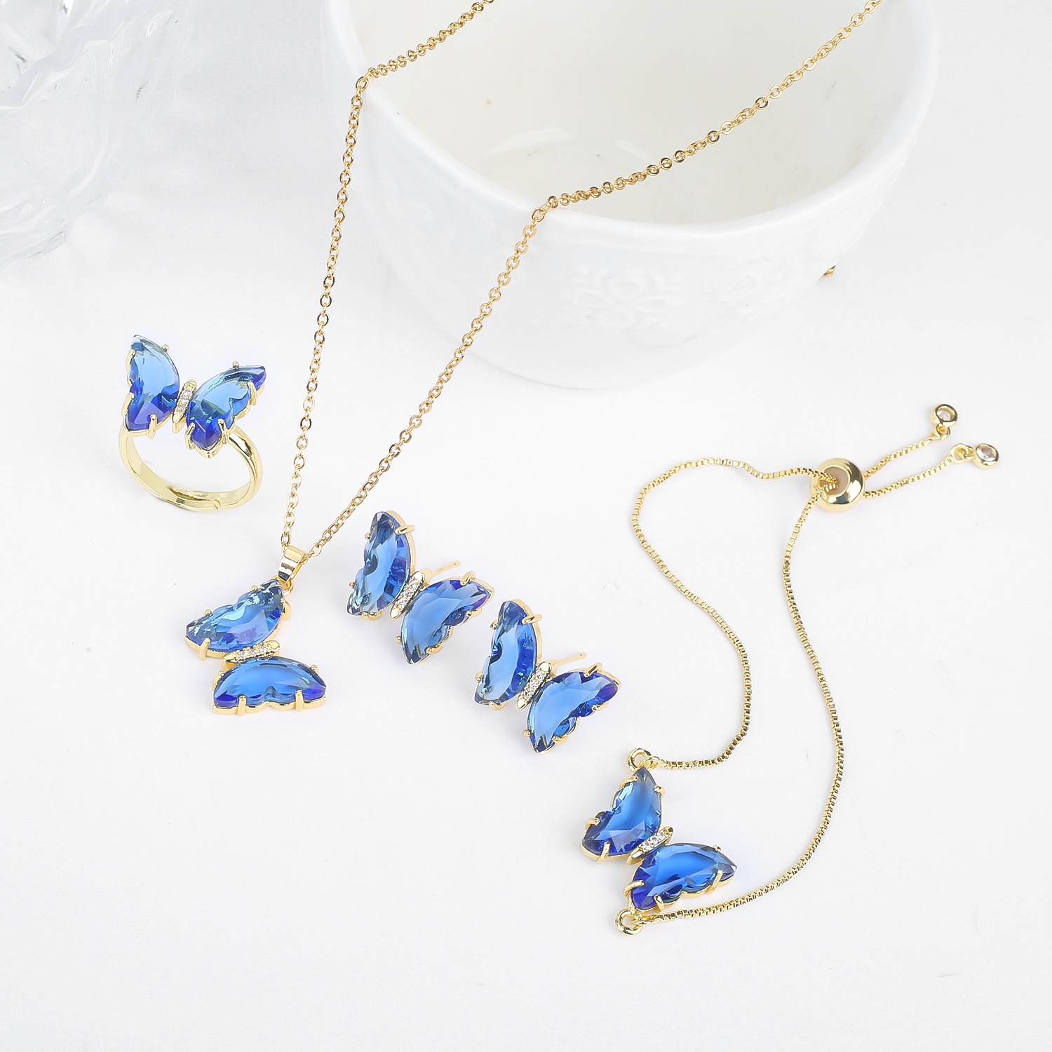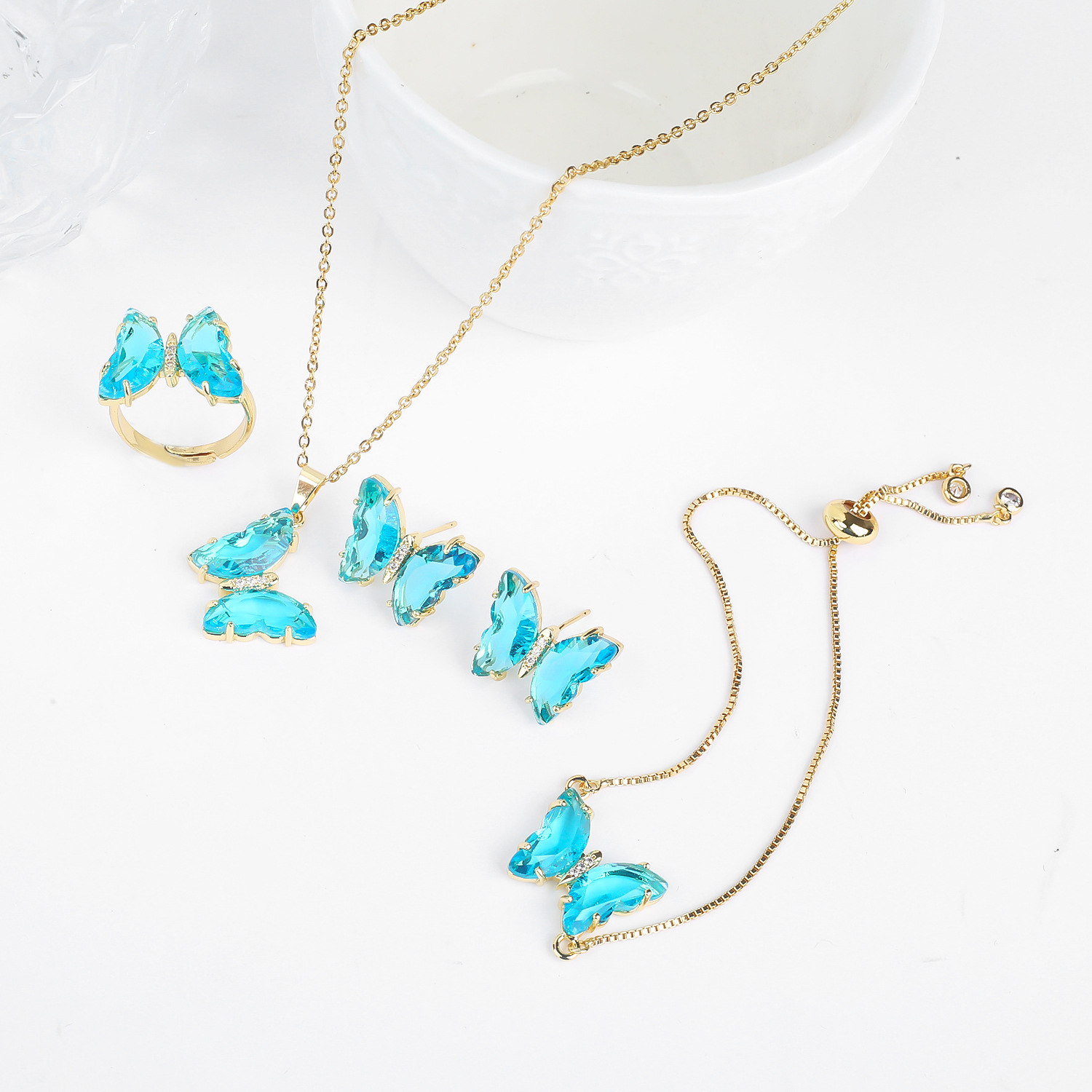 Lucky Crystal Butterfly Four-piece Suit Color Necklace