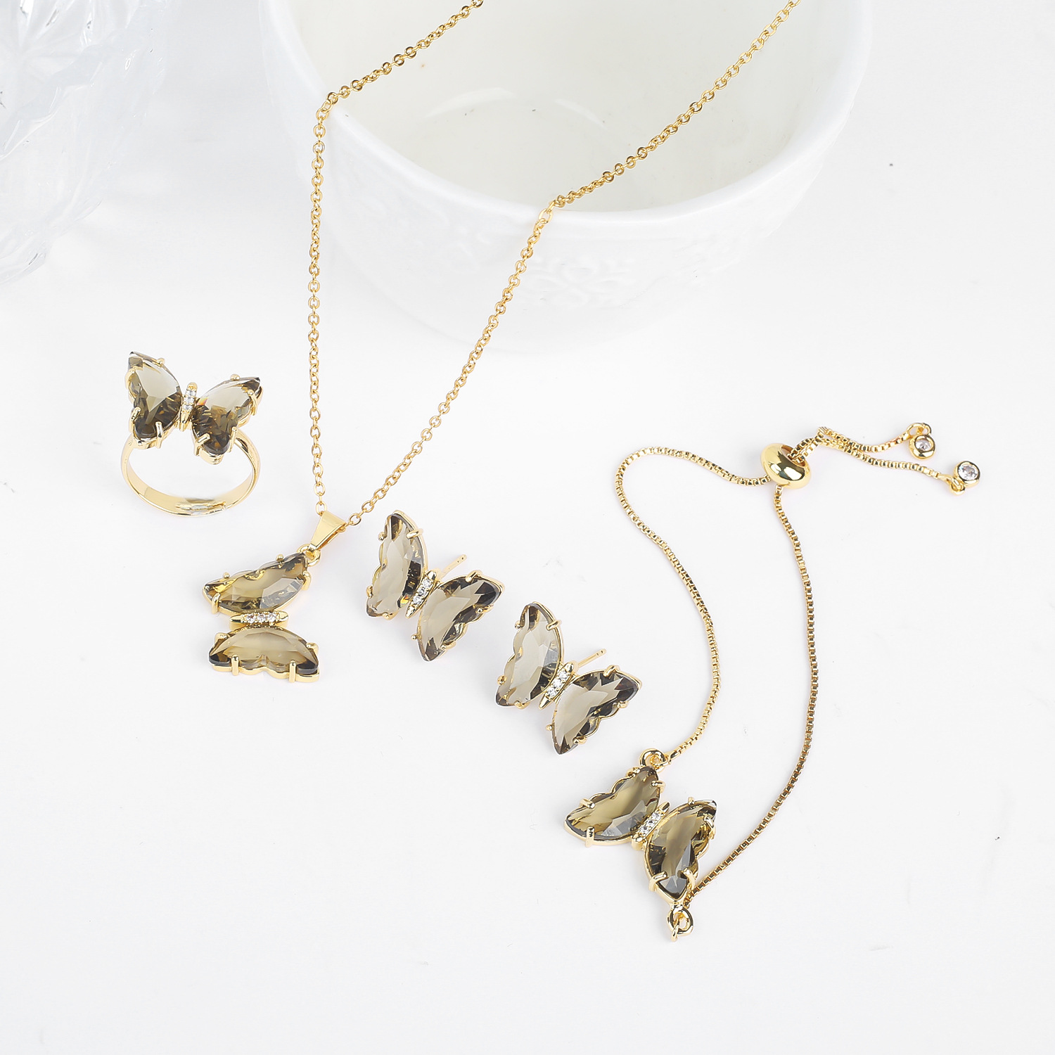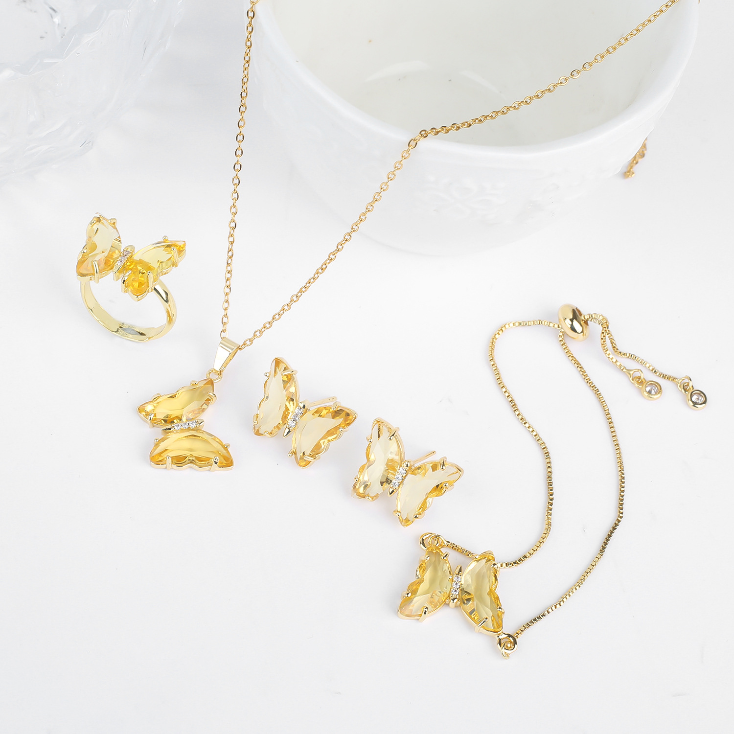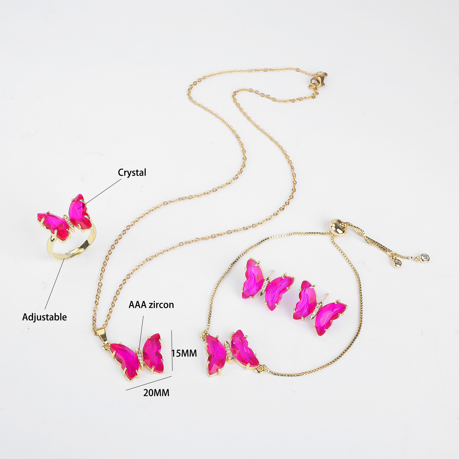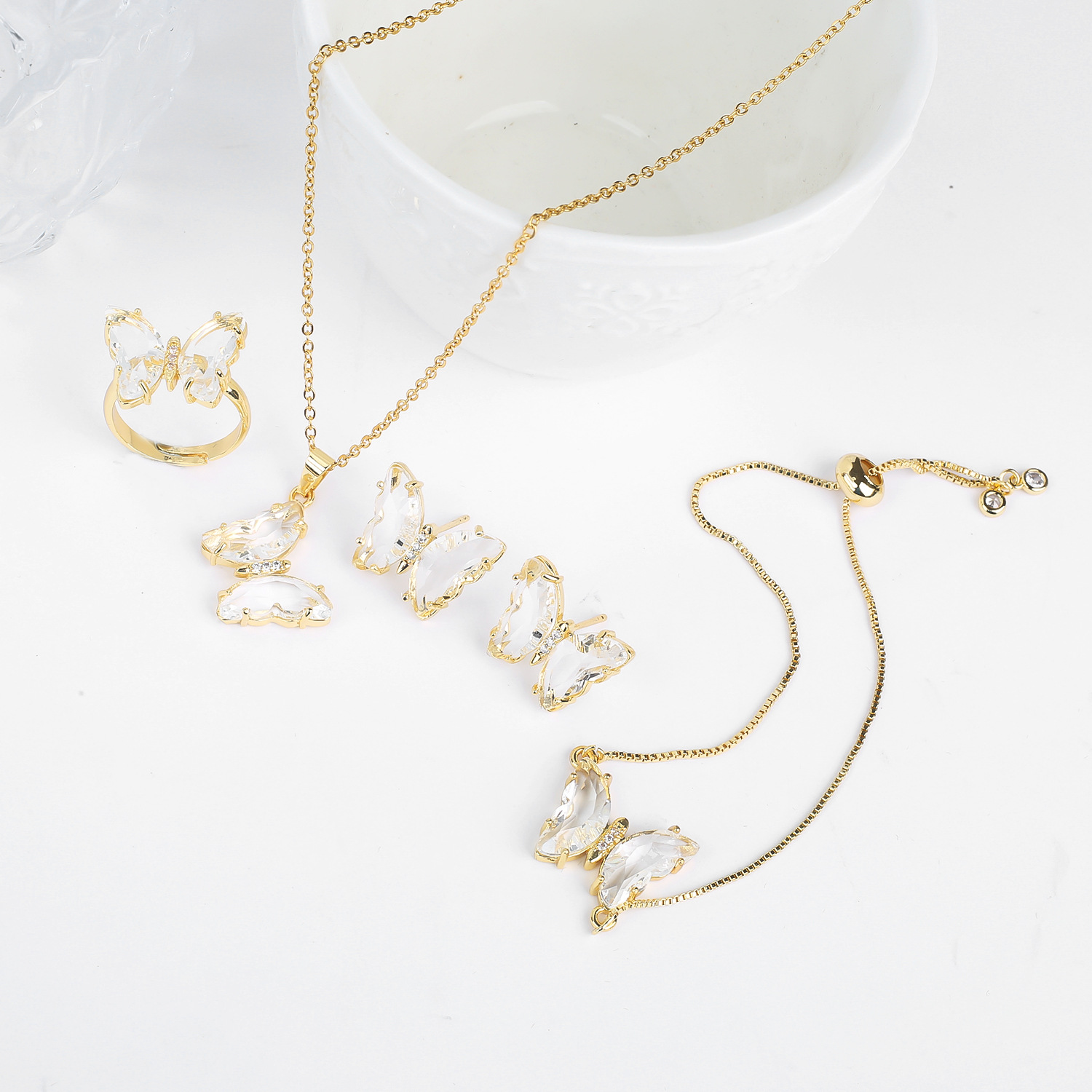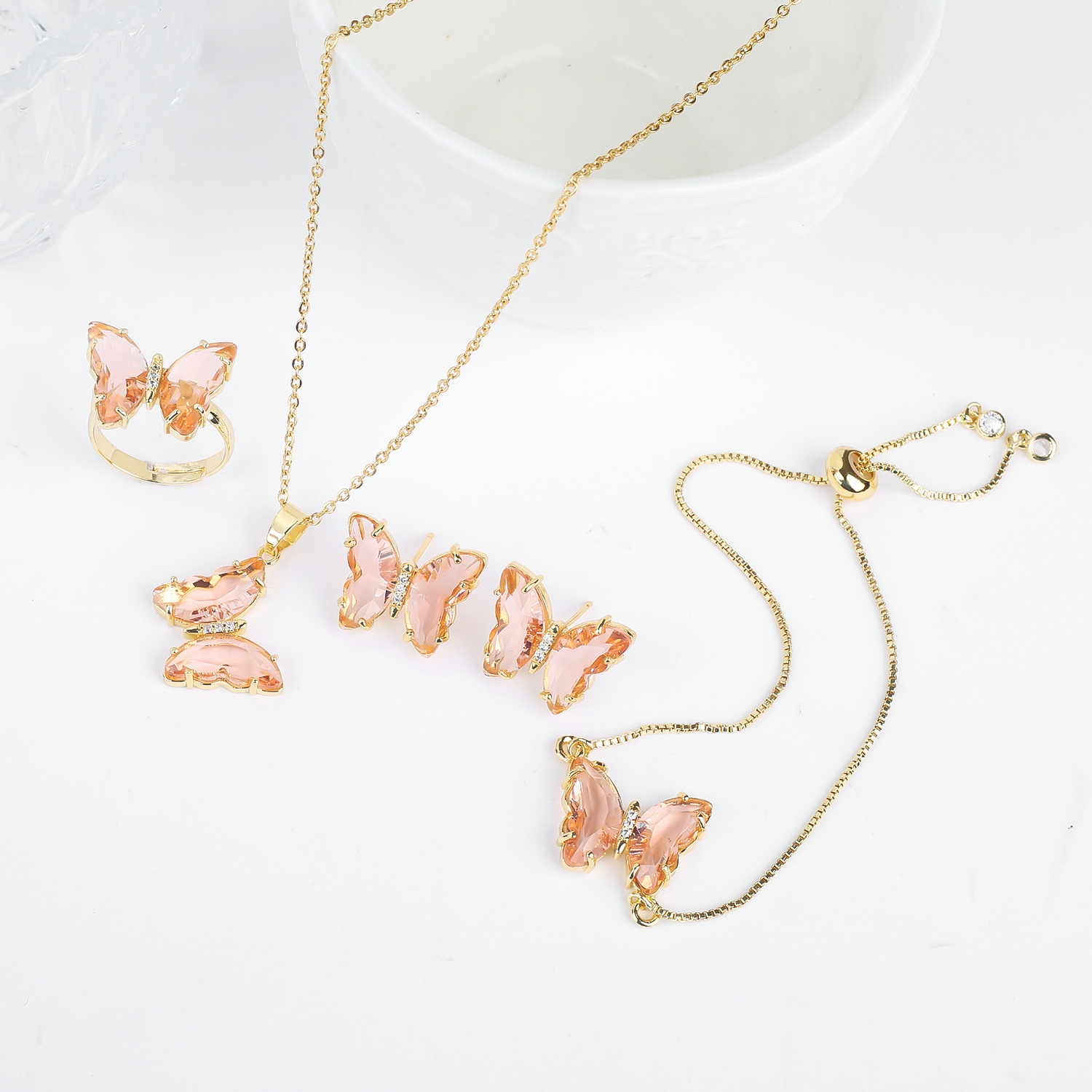 Lucky Crystal Butterfly Four-piece Suit Color Necklace