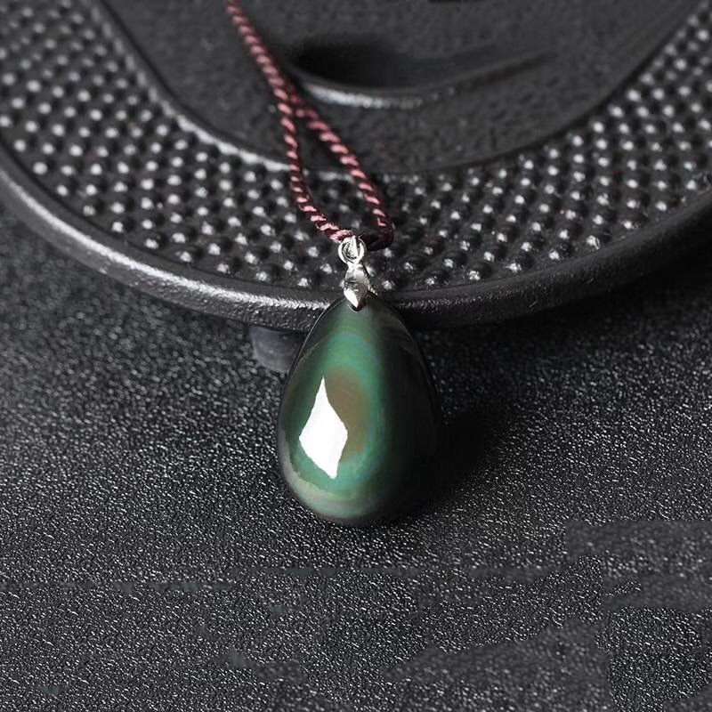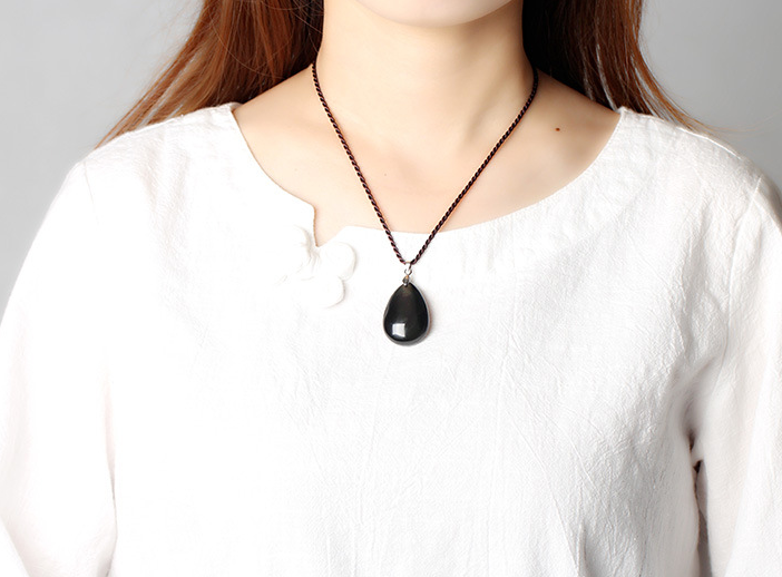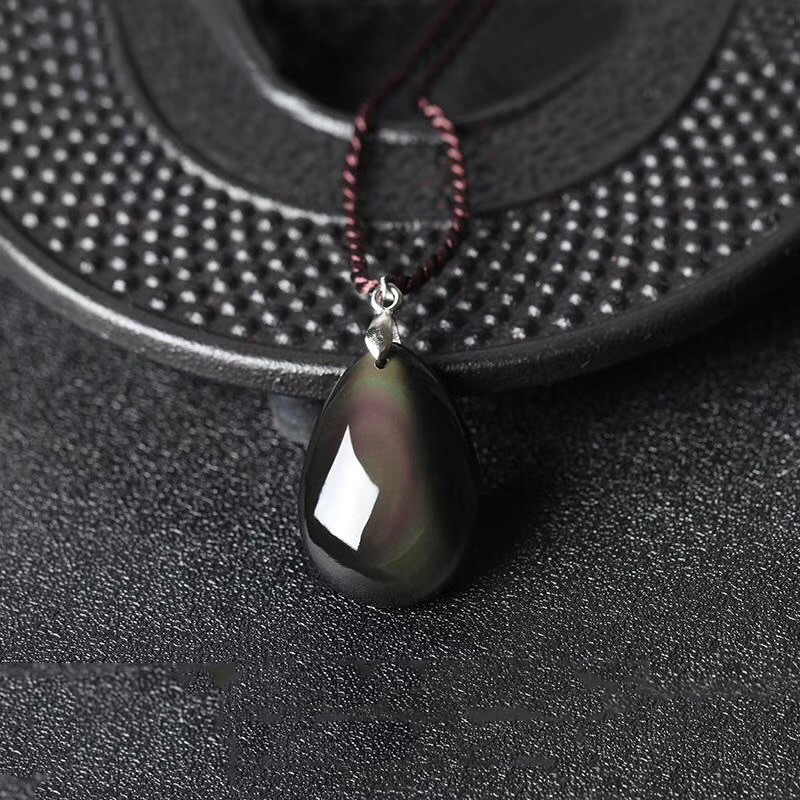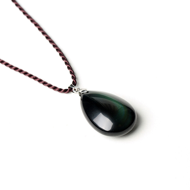 Product name: Natural Obsidian water drop Pendant with rope chain Necklace