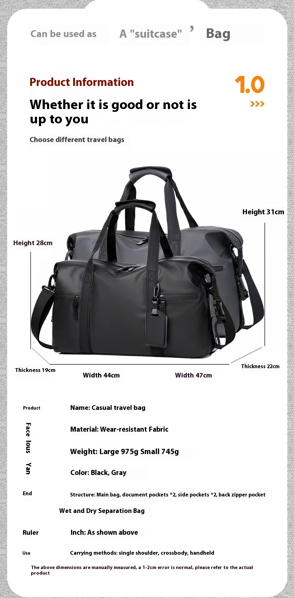 Color: Black large, gray large-sized, black small size, Gray small size small size