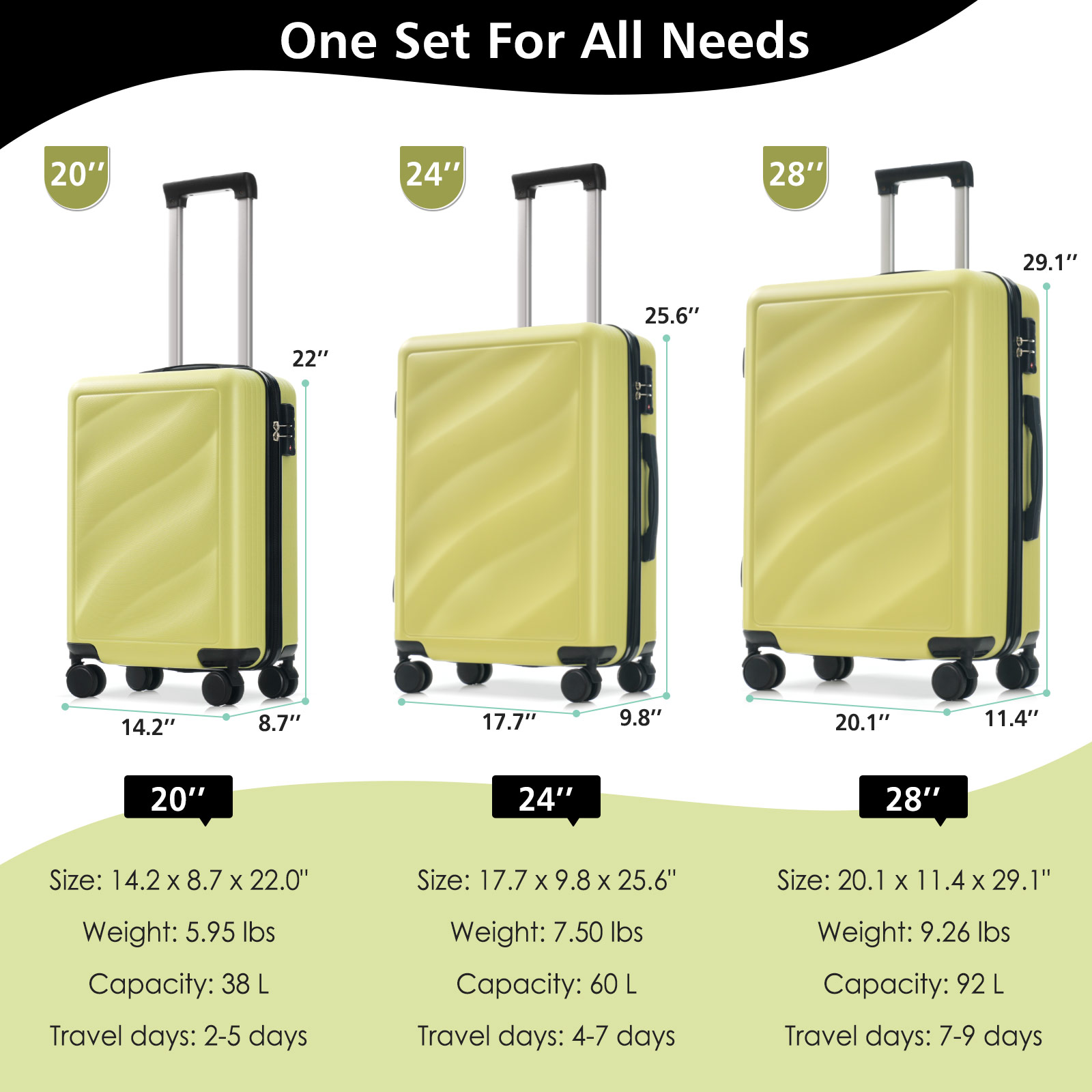 Product Name:Luggage Set 3 Piece, Lightweight Durable ABS Suitcases with Spinner Wheels and TSA Lock, Carry-on & Checked Travel Luggage (20"/24"/28")