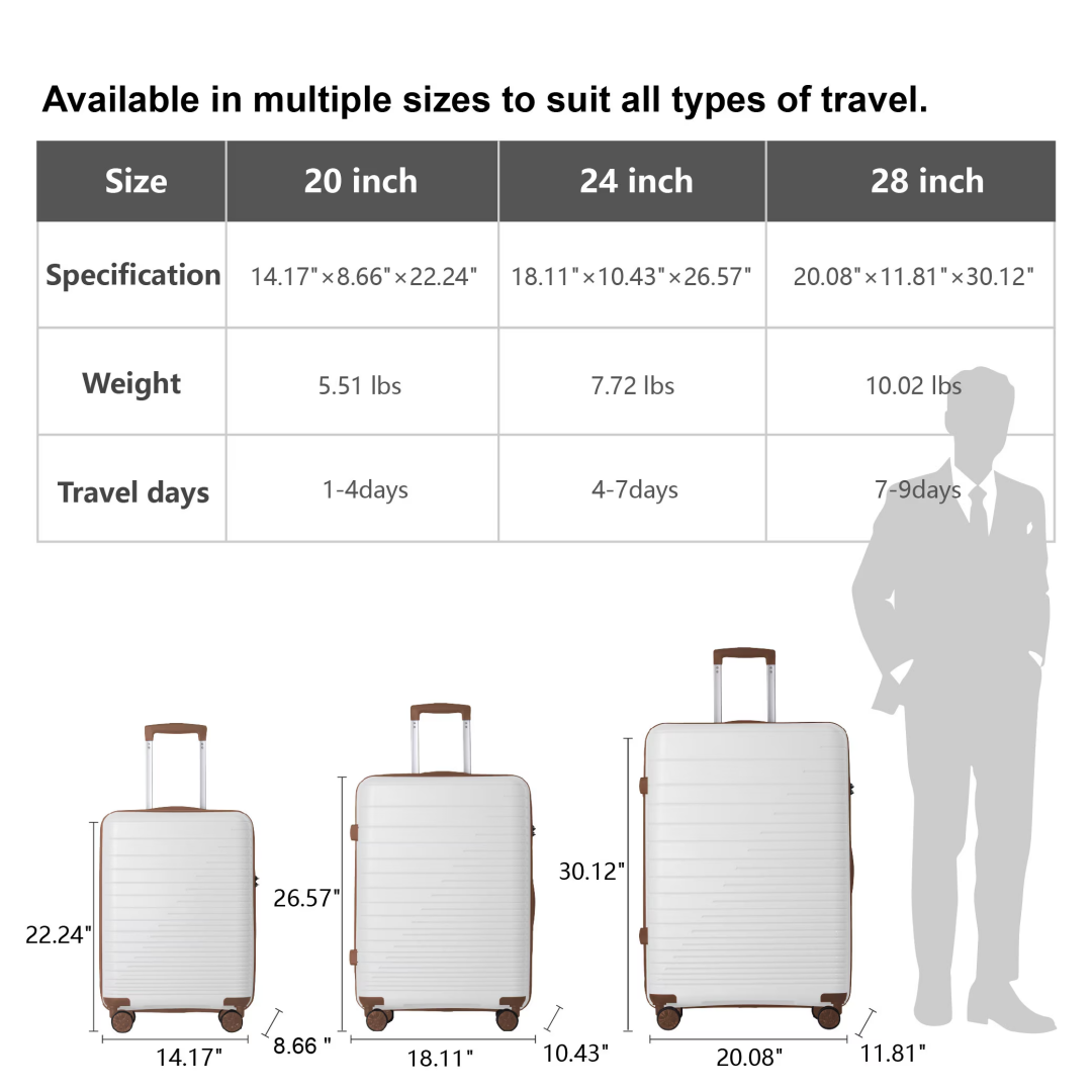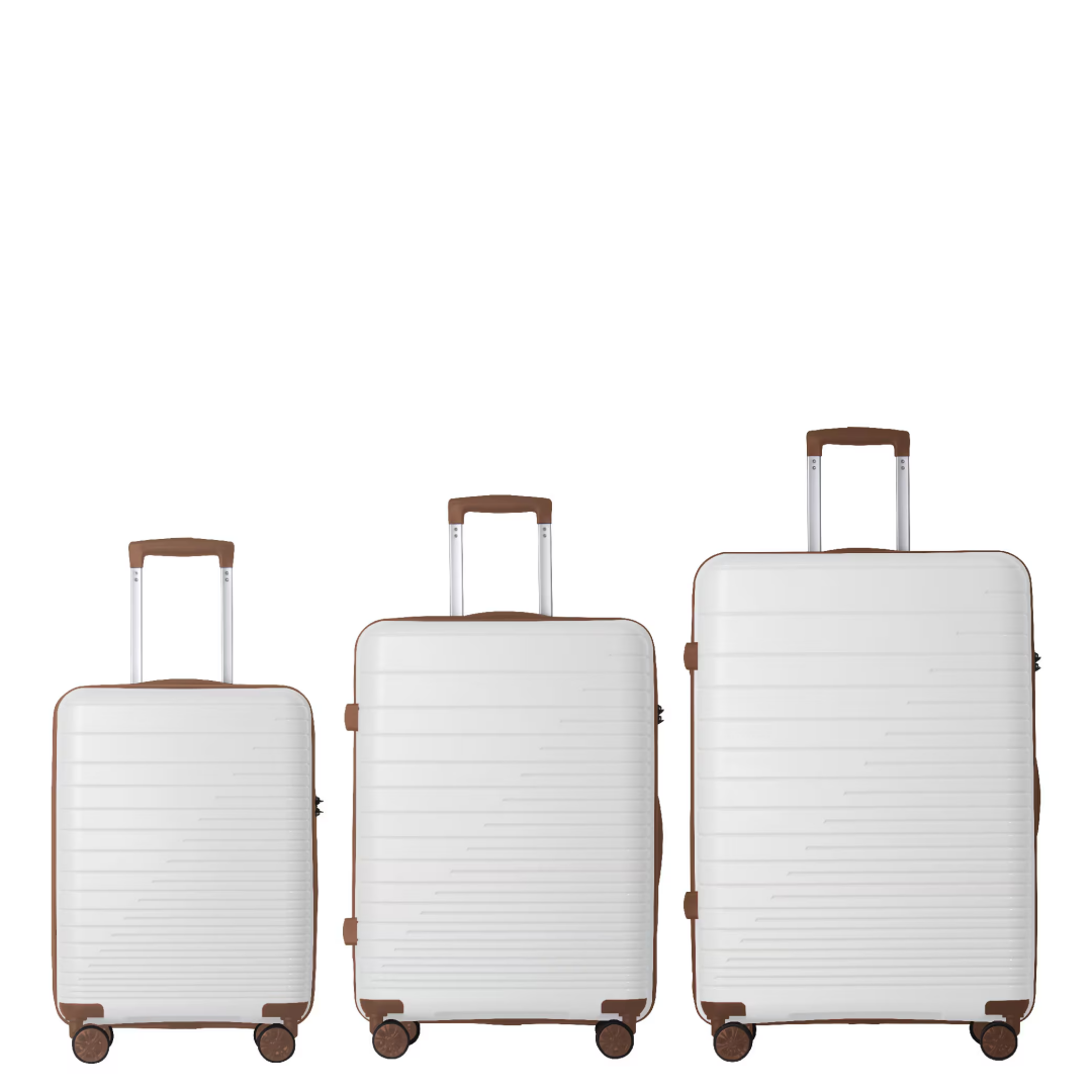 Product Name: Luggage Set 3 Piece, PP Hardshell Carry on Suitcase with Spinner Wheels & TSA Lock, Lightweight Suitcases for Business, Trip, (20"/24"/28"), White