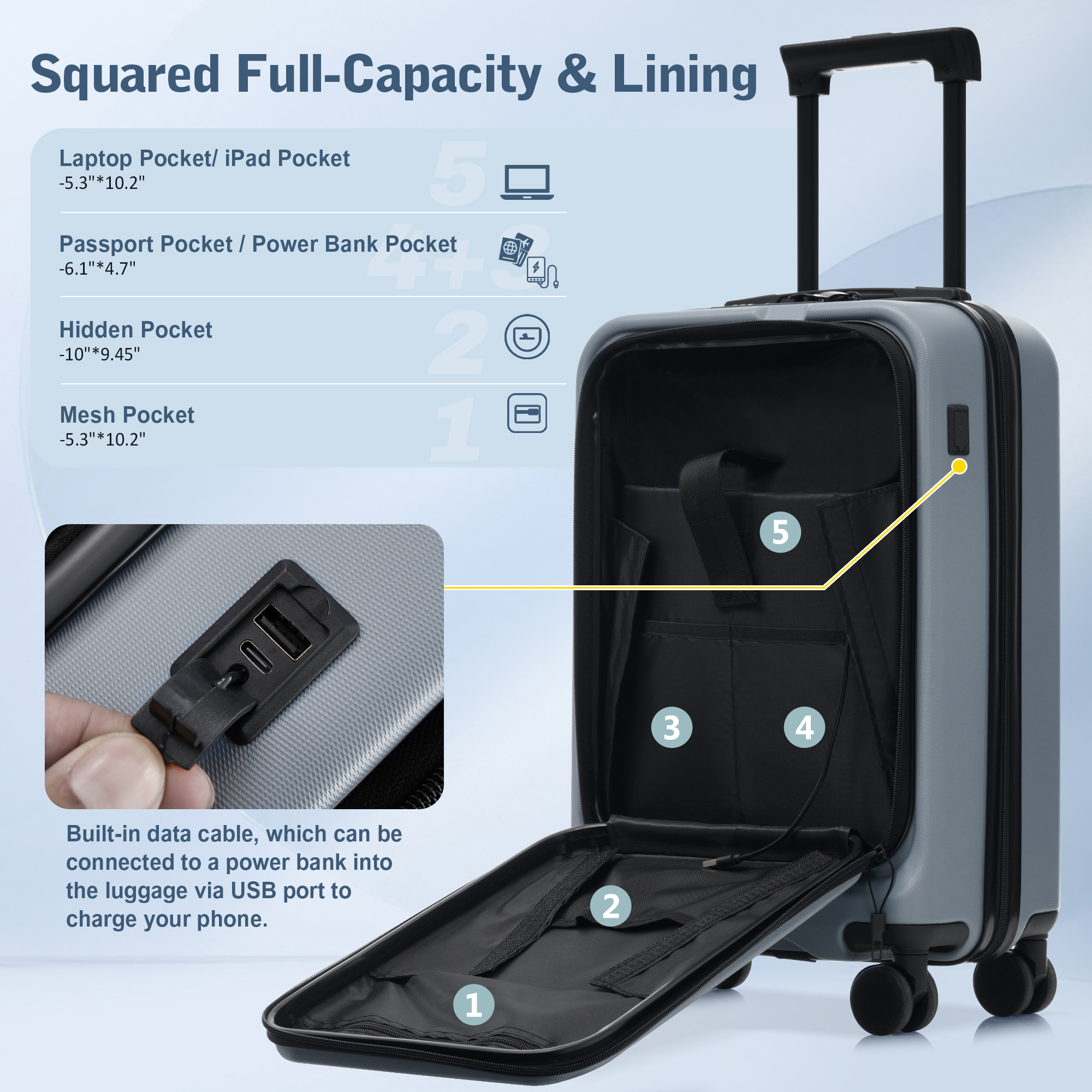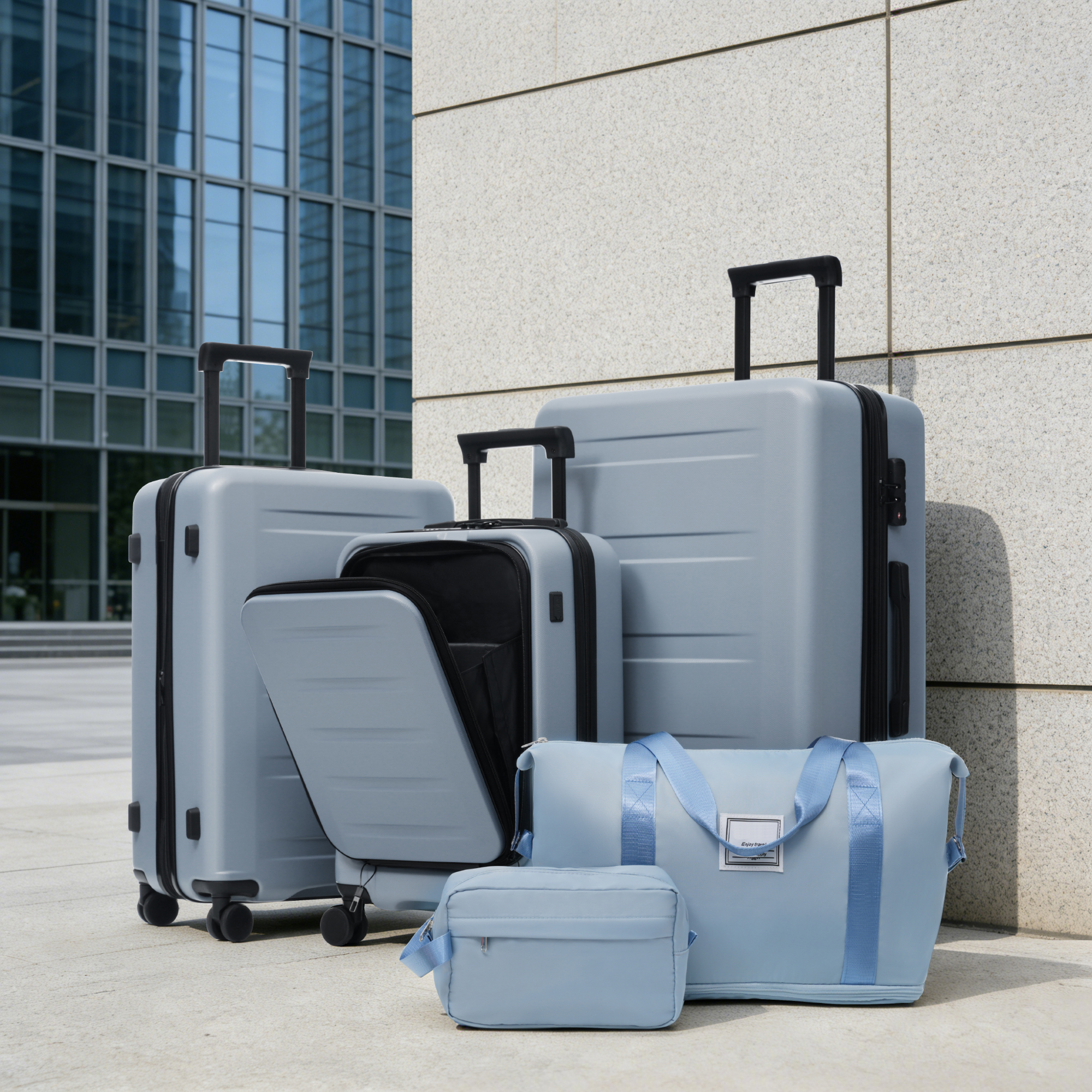 Product Name:Luggage Sets 5 Piece with Front Opening, Hardside Expandable Carry On Suitcase Set with Double Spinner Wheel, Lightweight Travel Luggage with USB Port,TSA Locks(20"24"28")
