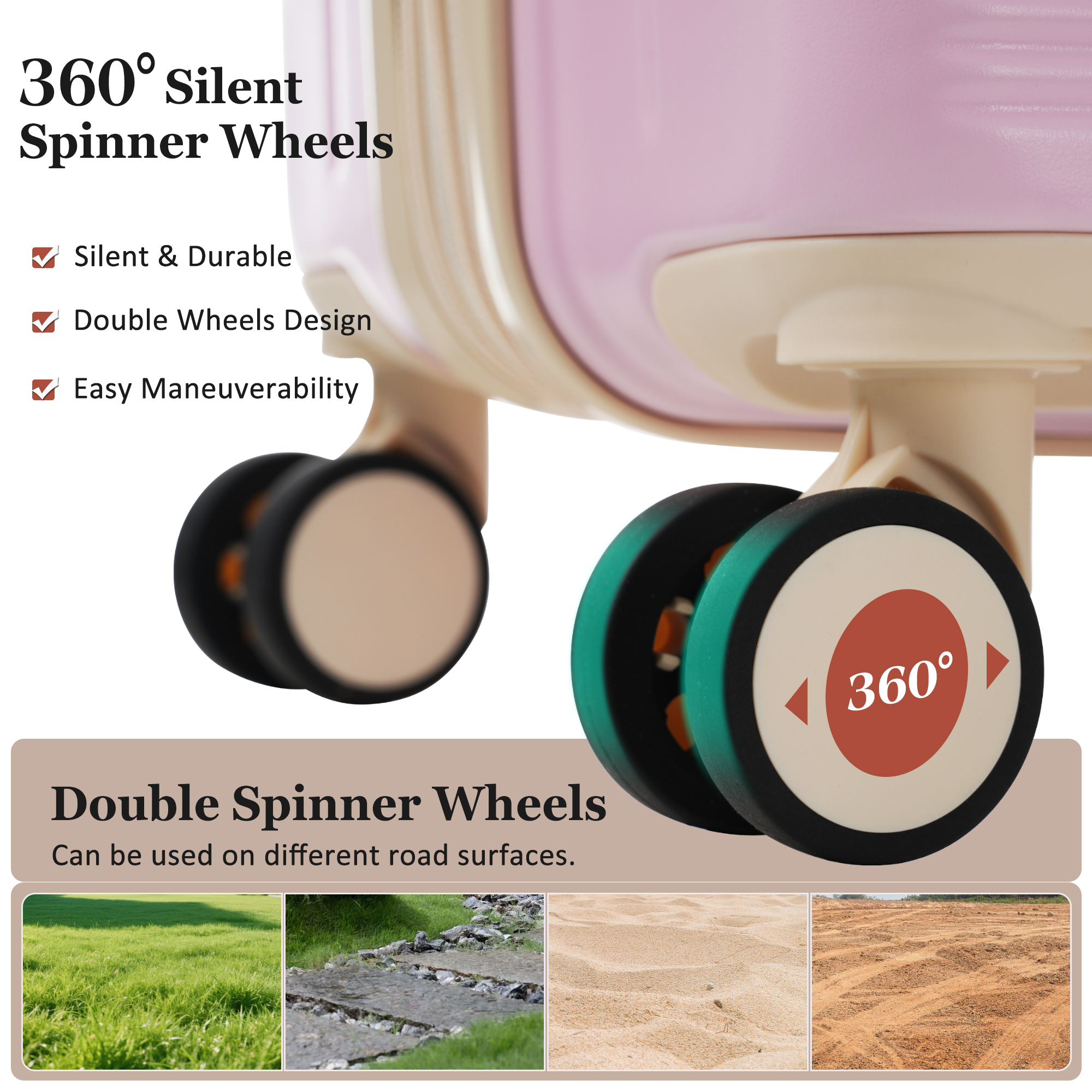 - 4.This suitcase features a fashionable appearance design,It is also equipped with double spinner wheels ensuring 360° free rotation to make their travel luggage sets quieter and smoother, Embrace superior directional control for perfect maneuverability on the go.