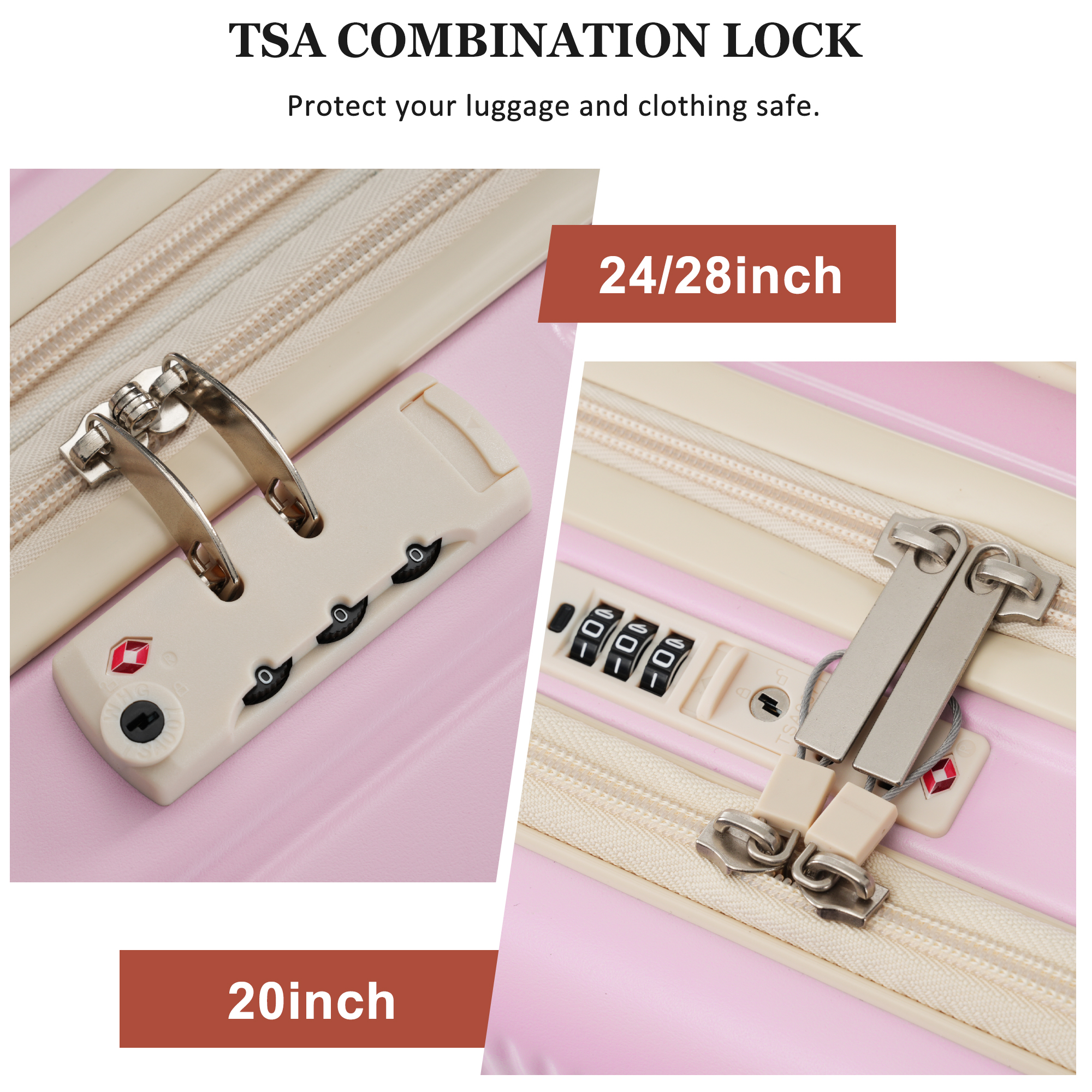 - 3.The 24-inch and 28-inch suitcases offer more expandable space, giving you more room for packing when you need it most, ideal for longer trips or extra belongings. Similarly, this suitcase also has 3- step telescoping handle,smooth and easy to adjustable,the top design is convenient for use when going up and down stairs.the TSA lock is designed to avoid violent damage to the luggage, which allows only customs agents to inspect your bags without damaging the lock when traveling.