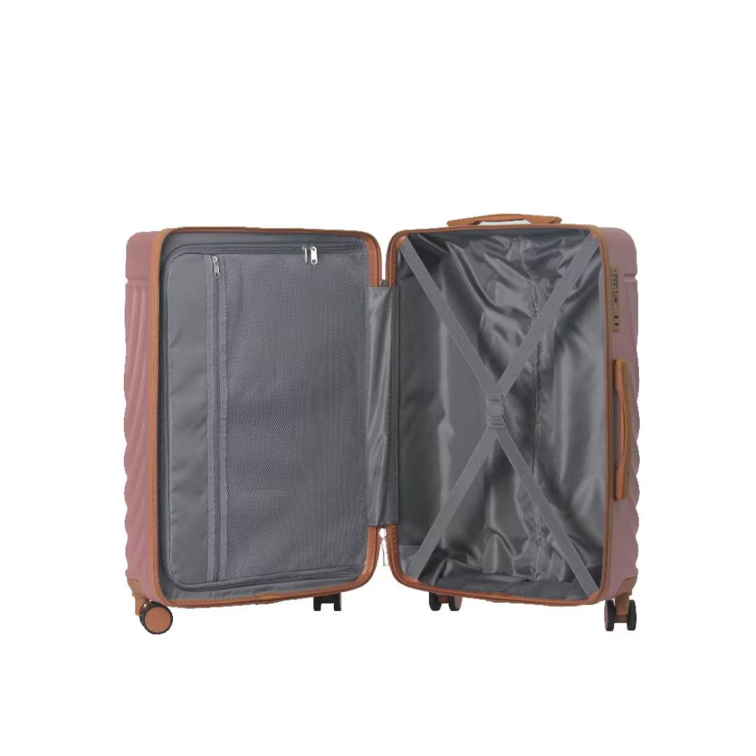 Nested Design: This 3-piece luggage set features a nested design with a 20" carry-on, 24", and 28" checked sizes, available to meet various travel needs.