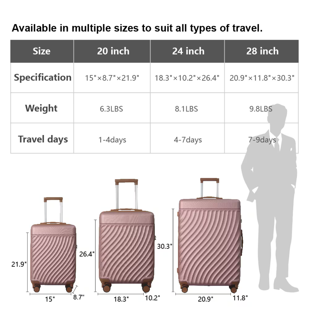 Product Name: Luggage Sets ABS Hardshell 3pcs Luggage, Lightweight Durable Suitcase sets Spinner Wheels Suitcase with TSA Lock 20''24''28'' Available(Rose Gold )