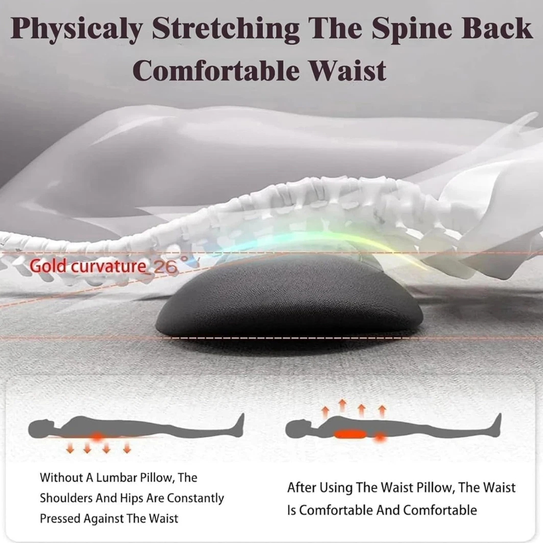 - Ergonomic Design: Designed according to ergonomic principles, the 135° golden curvature conforms to the natural curve of the waist, providing multi-point support in scientifically zoned areas. Whether sleeping on your side or back, it maintains a comfortable posture, effectively relieving lumbar pressure and helping you say goodbye to back pain.