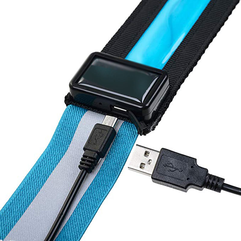 Design: adjustable non slip buckle, three gear light switch, elastic band, retractable reflective strip, USB charging and lighting