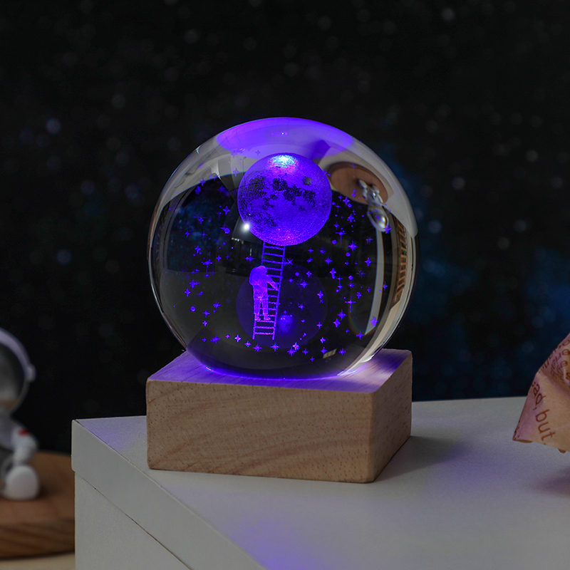 6cm ball walking starry sky + colored light square wood base