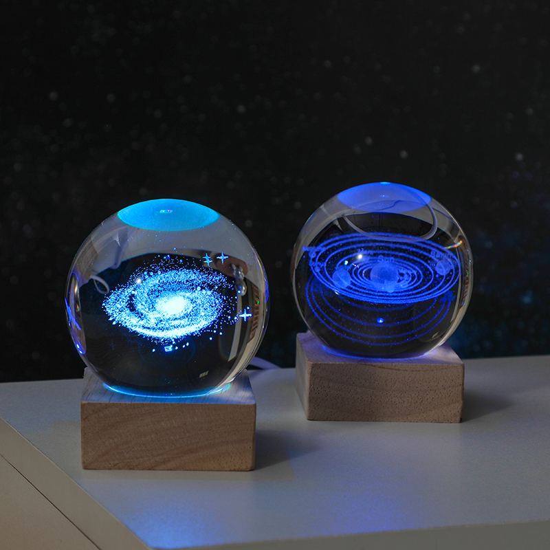 6cm ball Galaxy + colored light square wood base