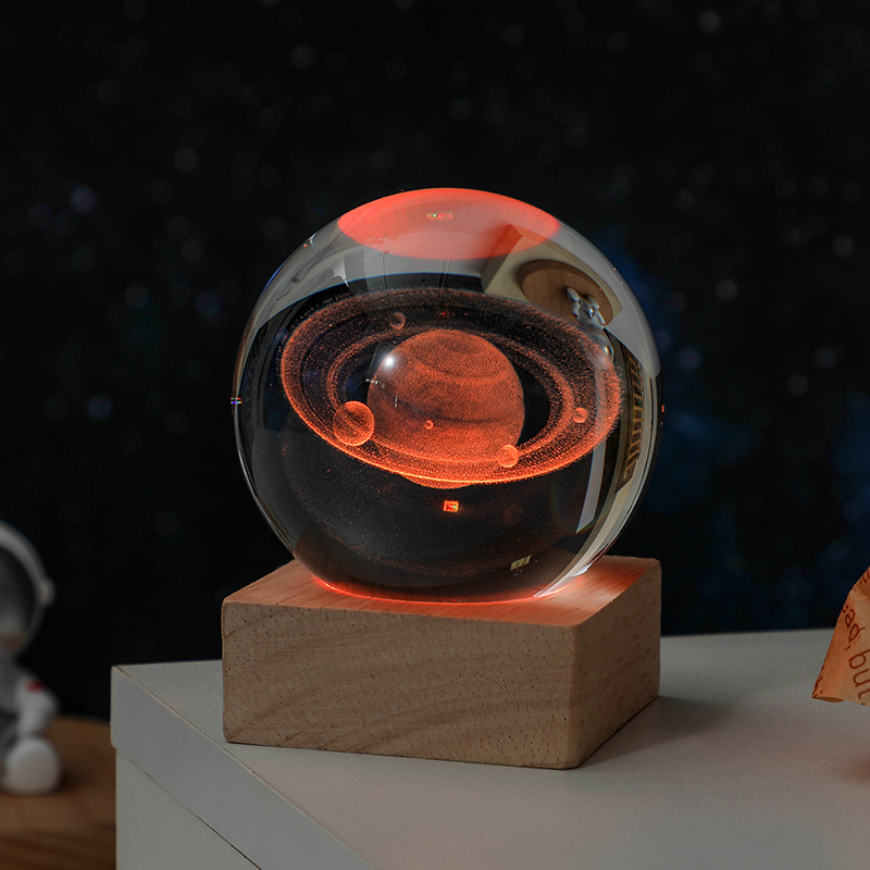 6cm ball Saturn + colored light square wood base