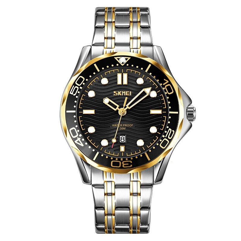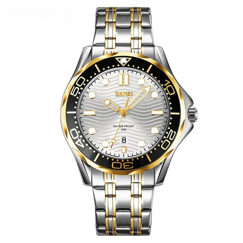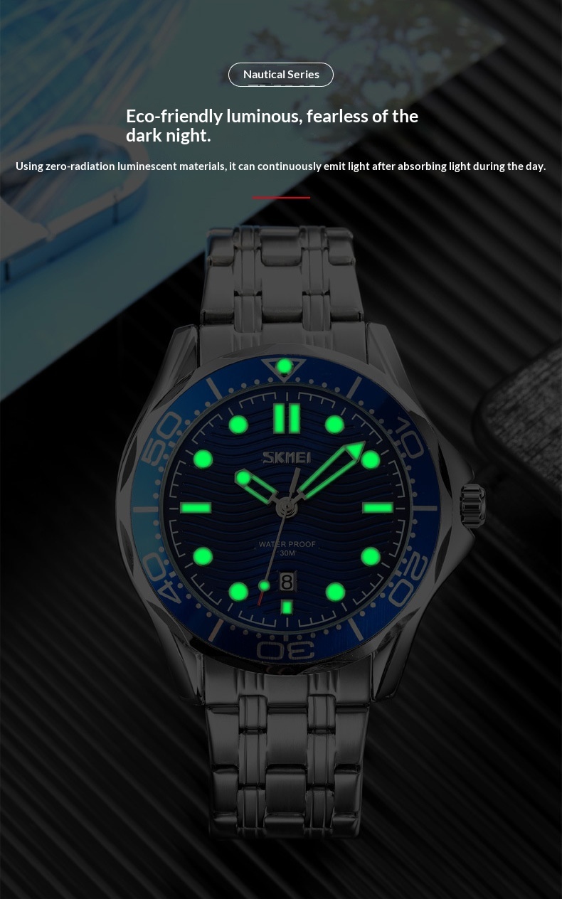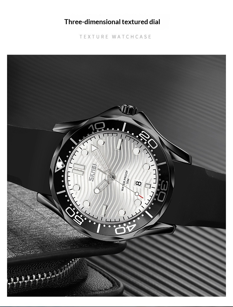 Colors: Silver dial with black face/stainless steel bracelet, silver dial with blue face/stainless steel bracelet, silver dial with white face/stainless steel bracelet, black dial/rubber strap, blue dial/rubber strap, silver dial/rubber strap, two-tone case with silver dial/stainless steel bracelet, two-tone case with black dial/stainless steel bracelet, two-tone case with blue dial/stainless steel bracelet