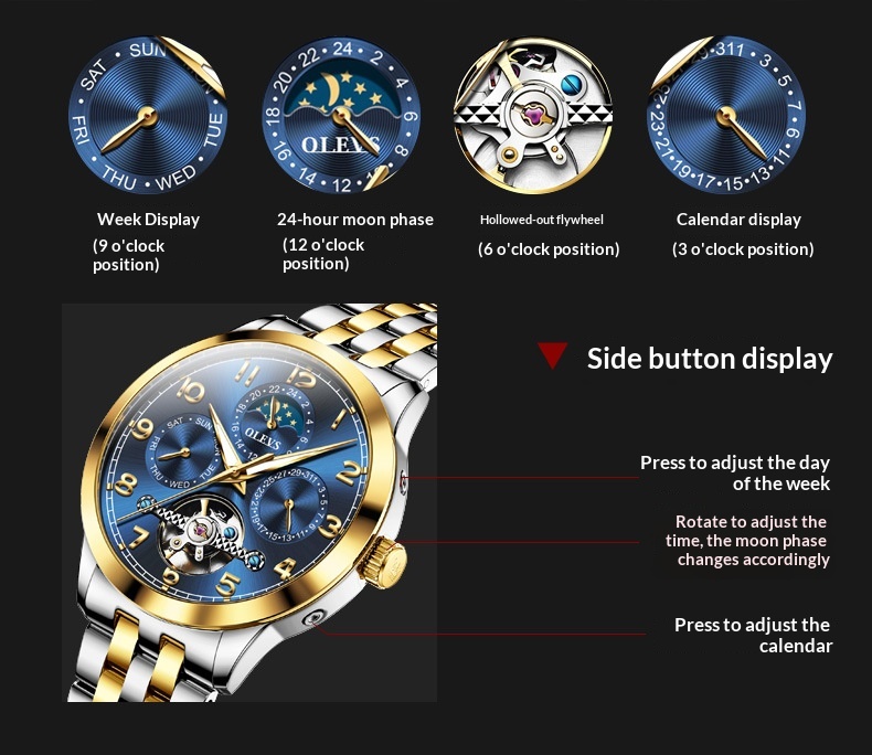 Colors: Men’s Li 7018 steel band natural white, Men’s Li 7018 steel band light white, Men’s Li 7018 steel band dark gray, Men’s Li 7018 steel band navy blue, Men’s Li 7018 steel band all gold