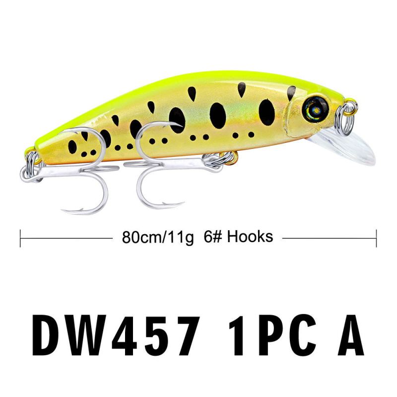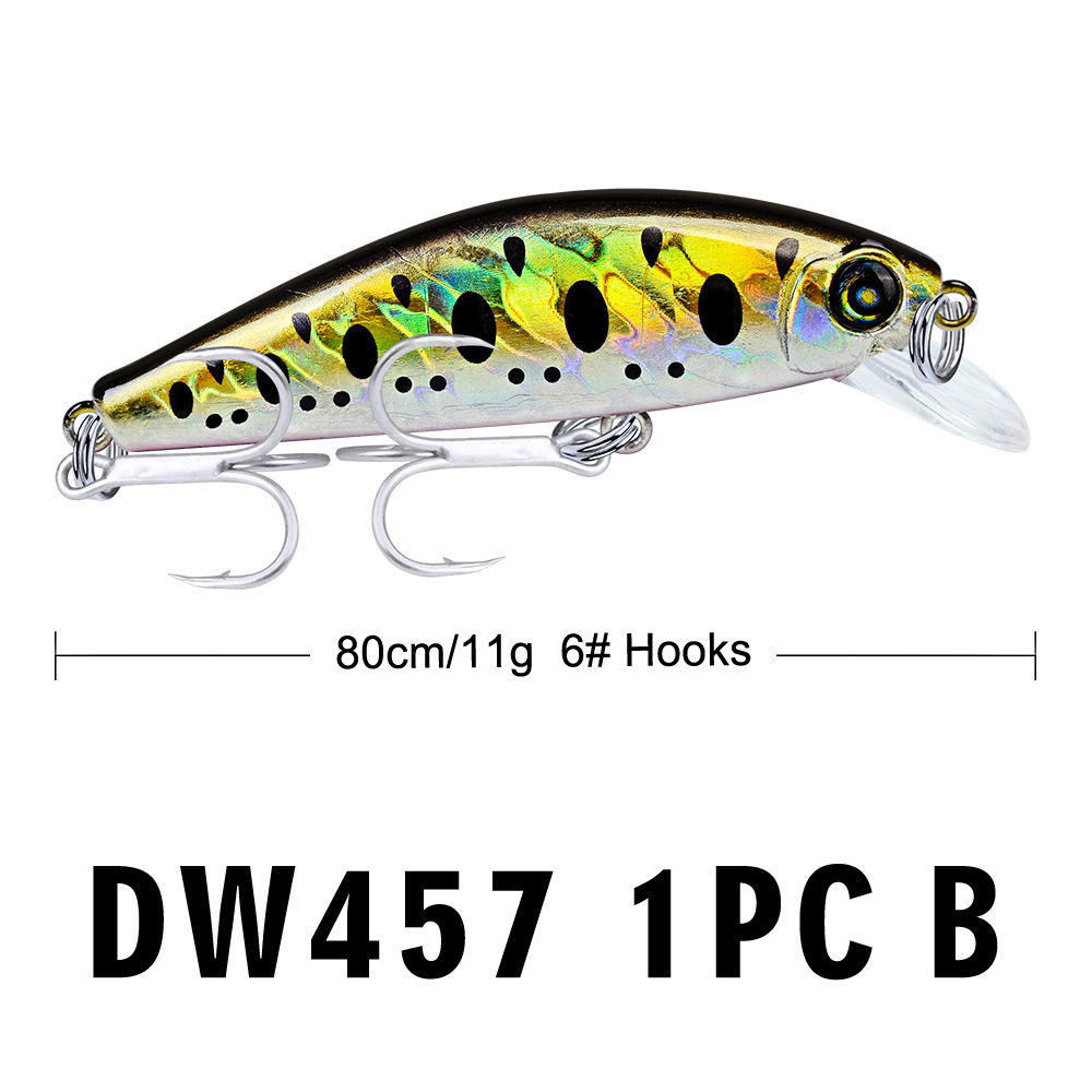 material: plastic Size: 8cm±0.5cmWeight: about 11GProduct material: ABS hard baitHook size: BKB 6#hookDive depth: 0.9-1.8 meters