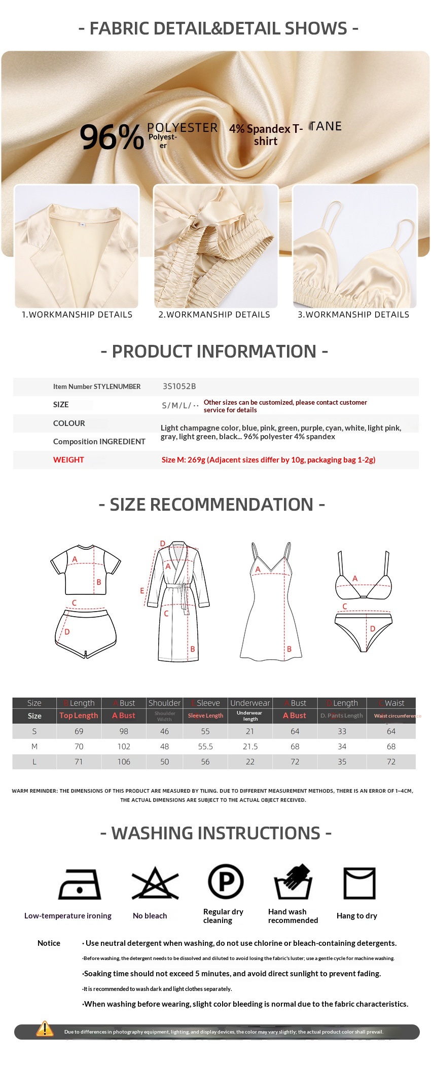 Sizes: S (recommended for 80–100 jin), M (recommended for 100–120 jin), L (recommended for 120–140 jin)