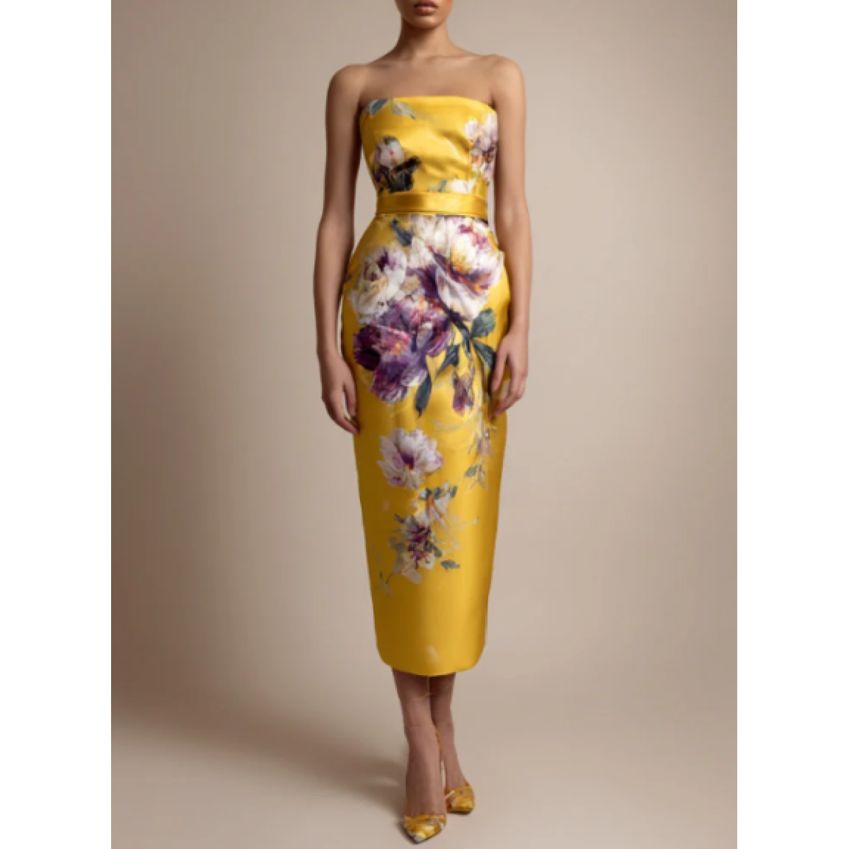 Luxury Floral Art Print Strapless Midi Dress