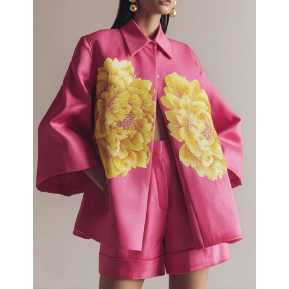 Luxury Floral Print Satin Jacket & Shorts Set