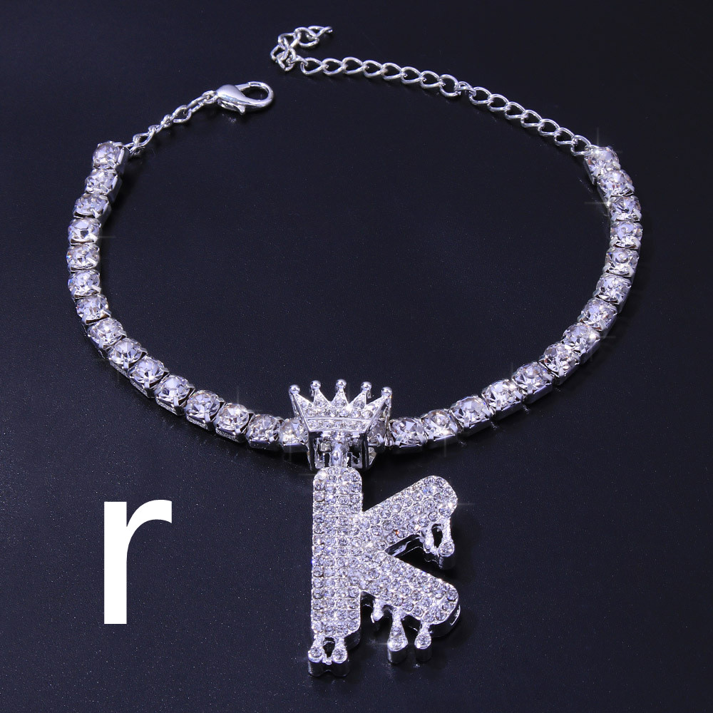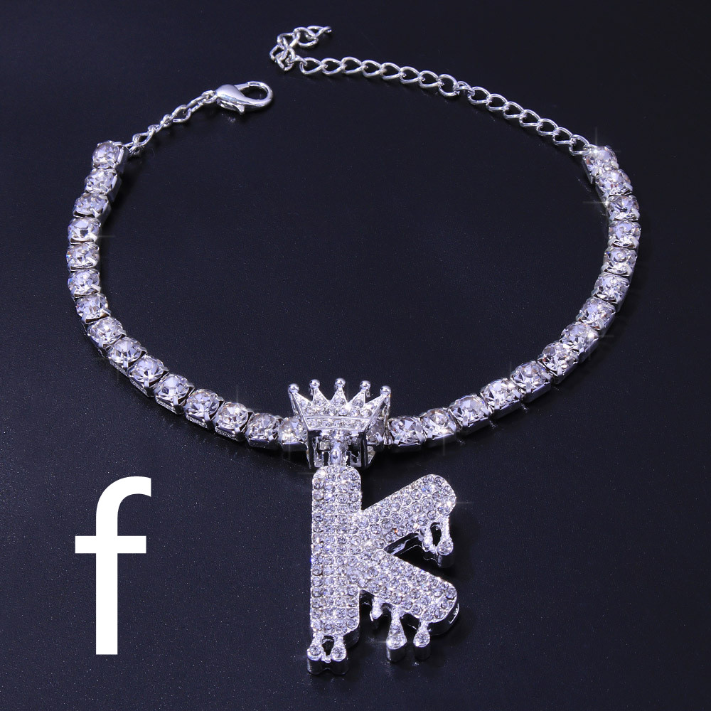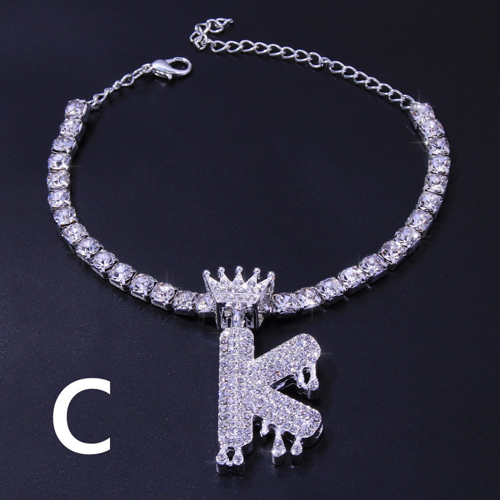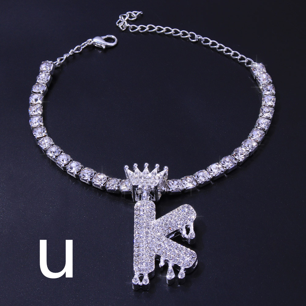 Luxury Hip Hop Pendant Rhinestone Anklet Drop Crown 26 Letter Anklet