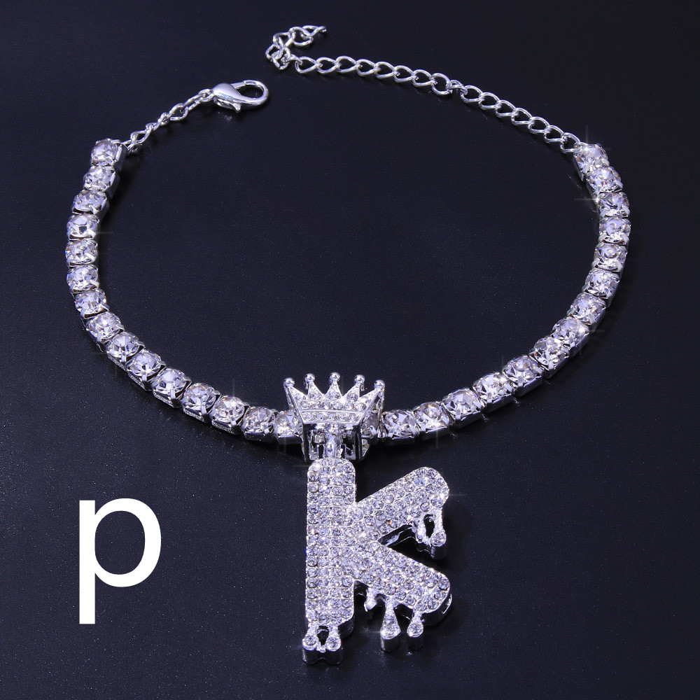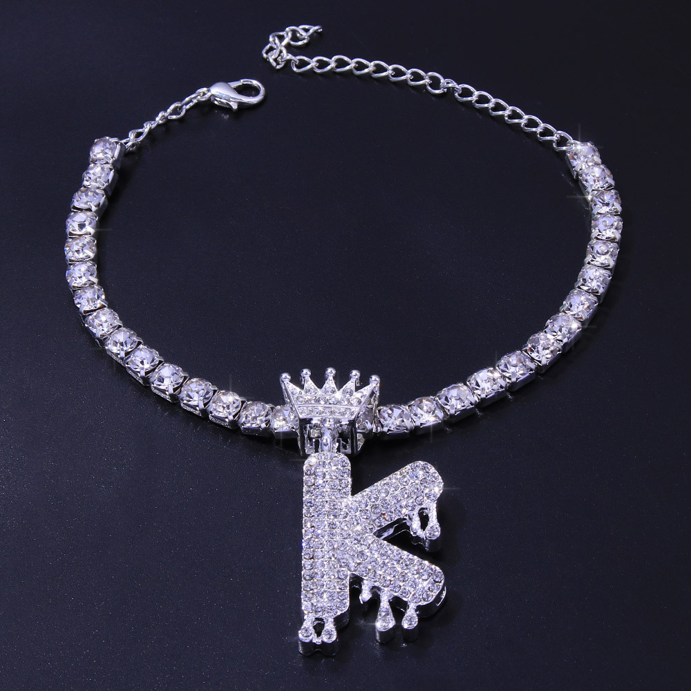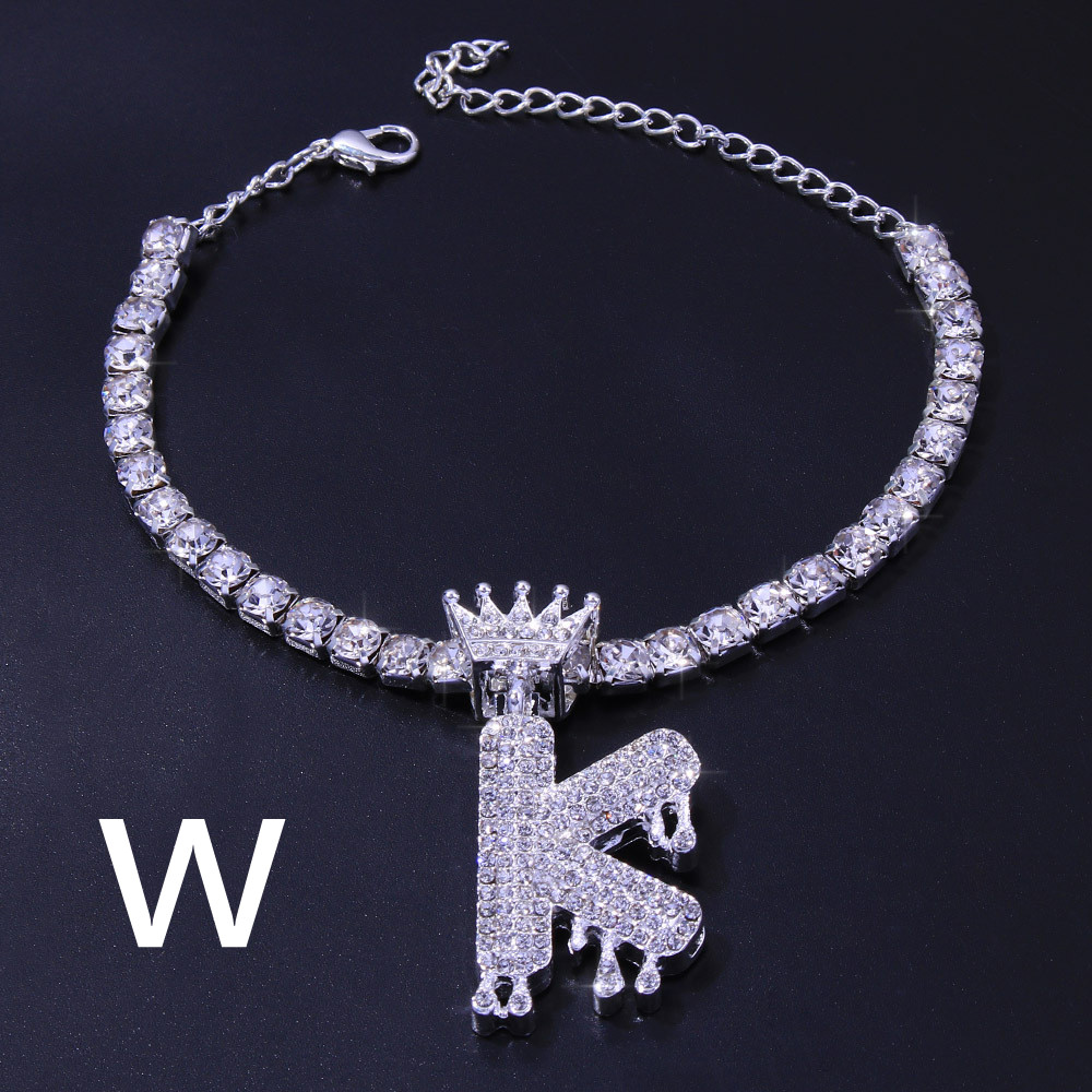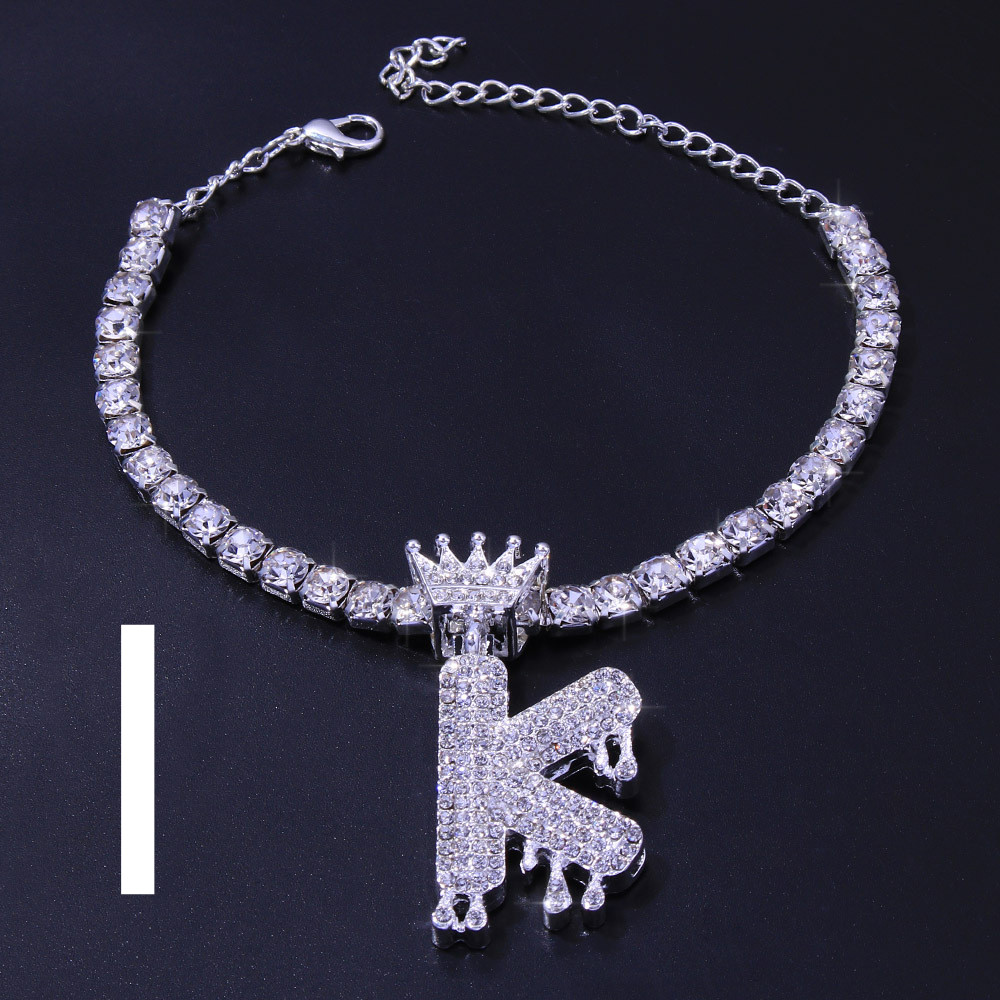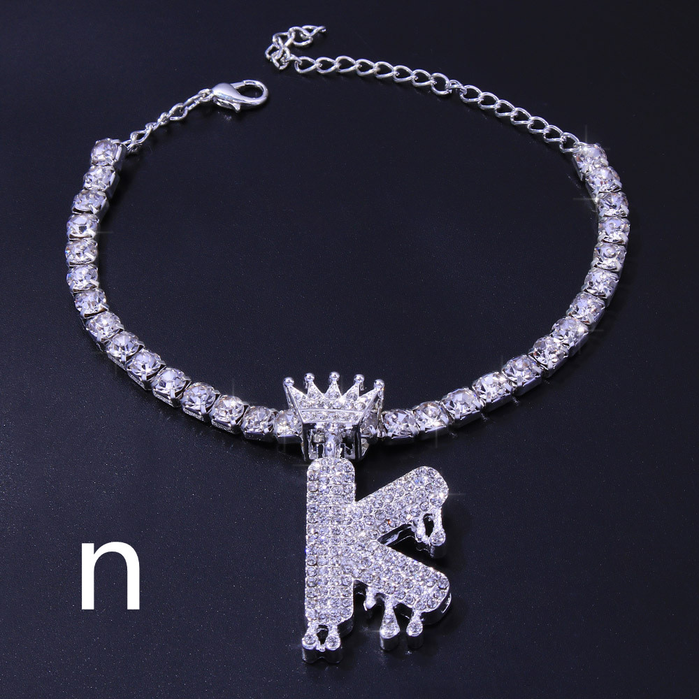 Luxury Hip Hop Pendant Rhinestone Anklet Drop Crown 26 Letter Anklet