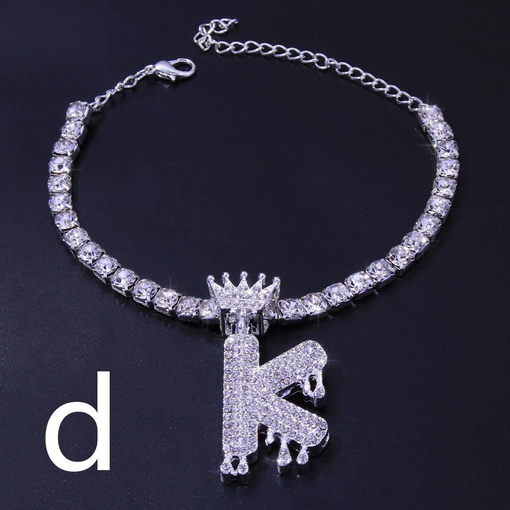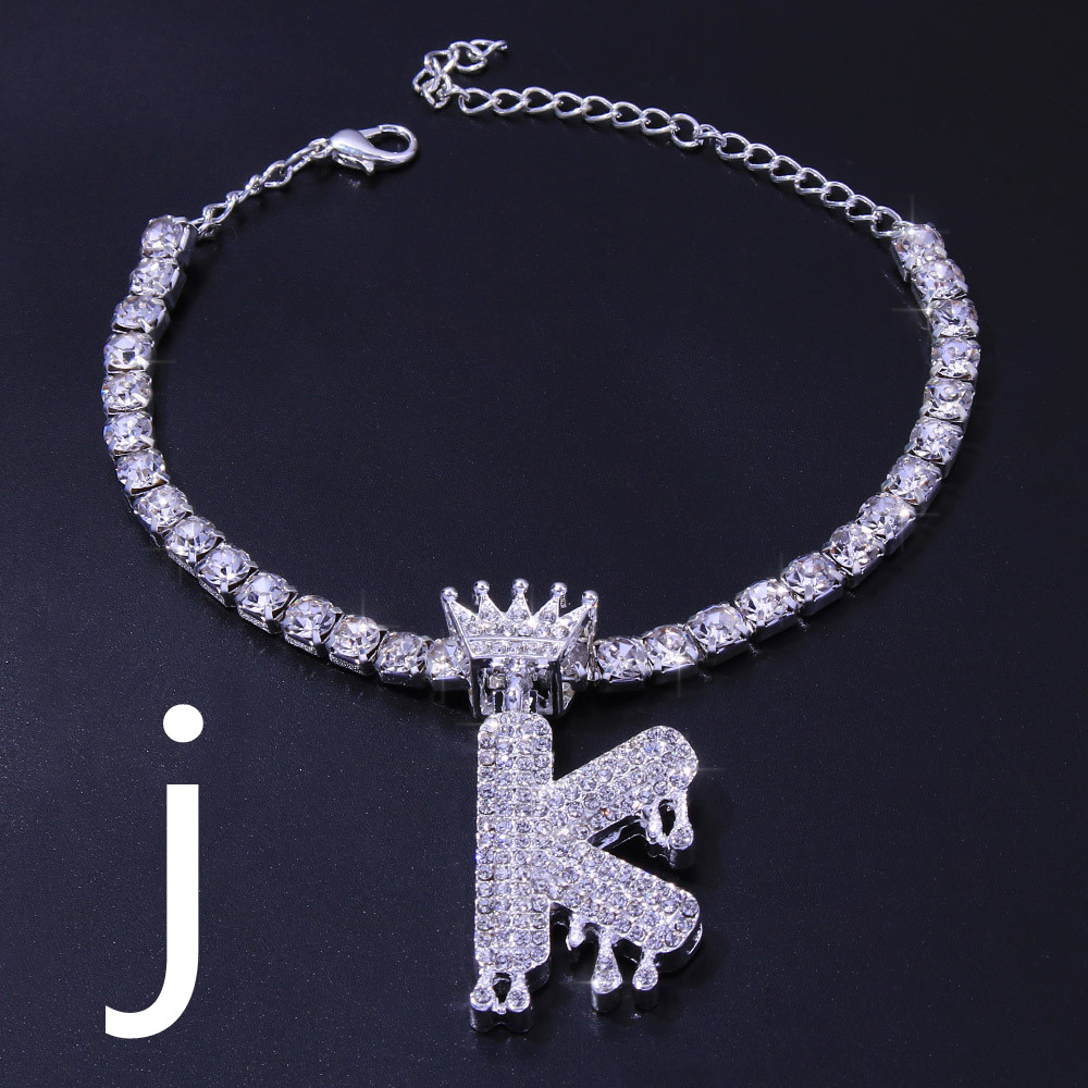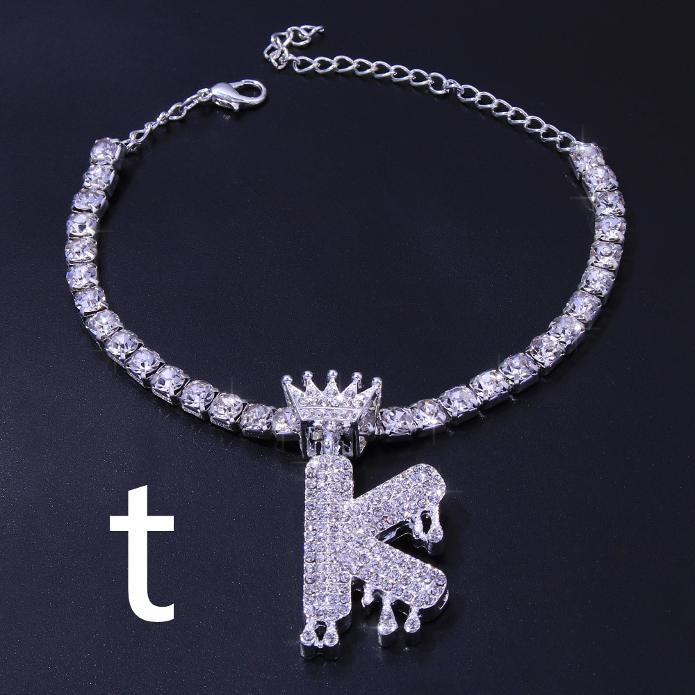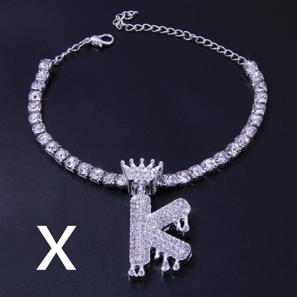 Luxury Hip Hop Pendant Rhinestone Anklet Drop Crown 26 Letter Anklet