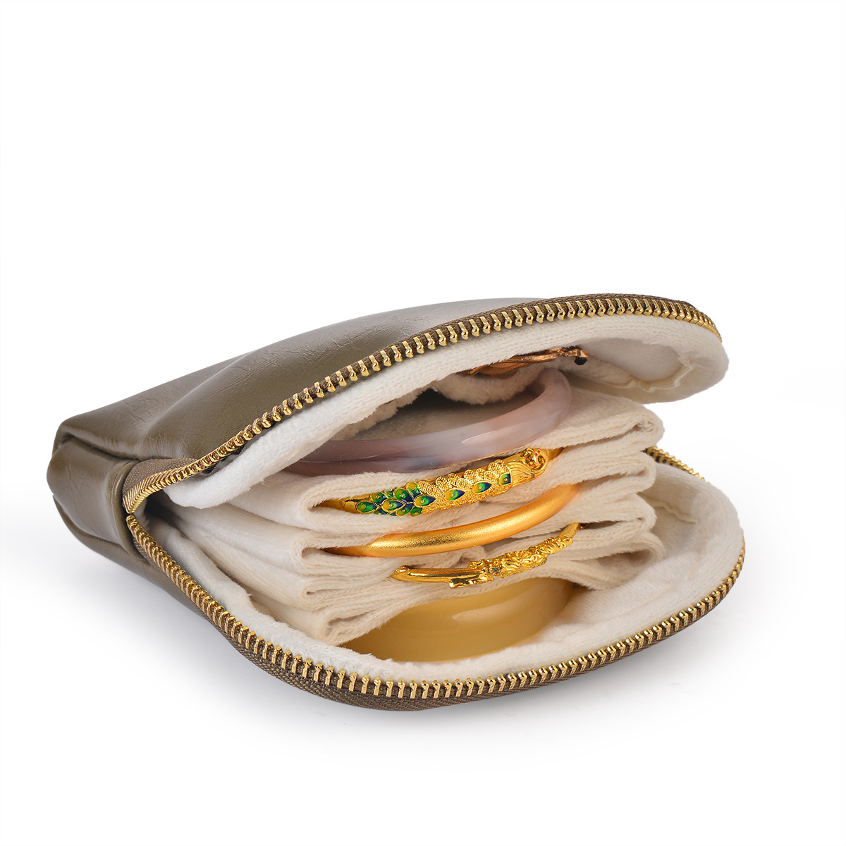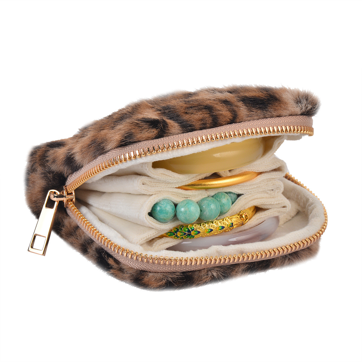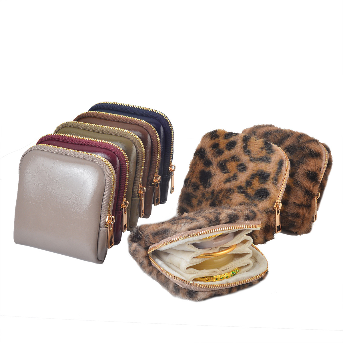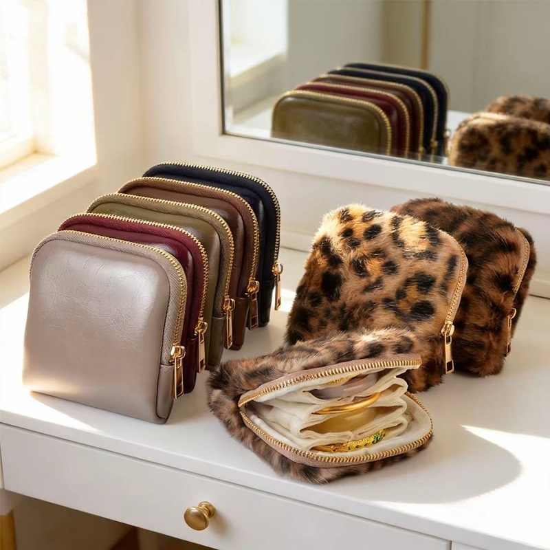 Colors: Cashmere gray PU-lined fleece storage bag, wine red PU-lined fleece storage bag, coffee-colored PU-lined fleece storage bag, olive green PU-lined fleece storage bag, milk brown leopard-print fleece-lined storage bag, milk coffee leopard-print fleece-lined storage bag, milk white leopard-print fleece-lined storage bag, emerald blue PU-lined fleece storage bag.