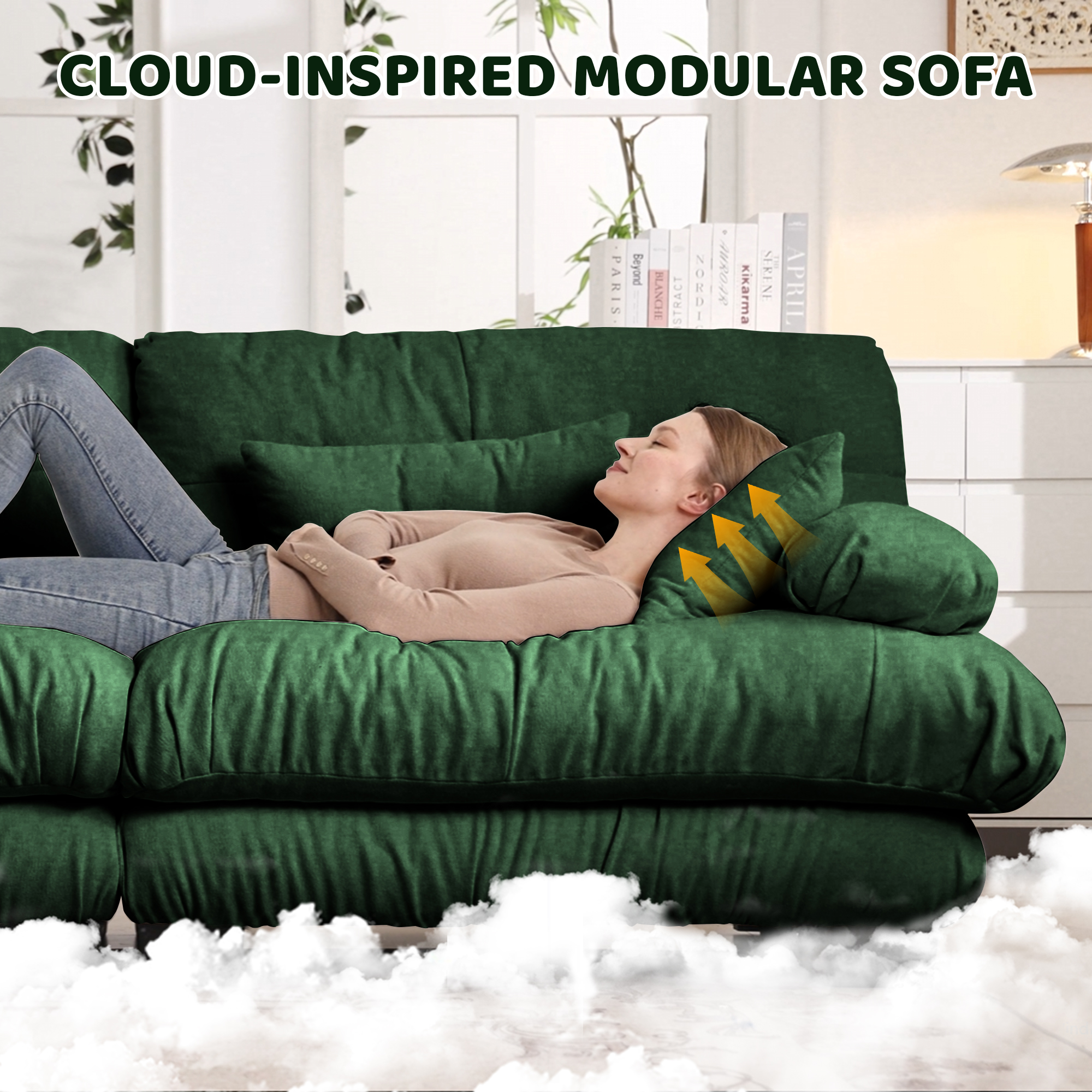 Product Name:Luxury Modular Sectional Sofa Couch - Oversized U Shaped Cloud Couch for Living Room,Deep Seat Sofa Couch with 2 Ottomans ,Chenille Green
