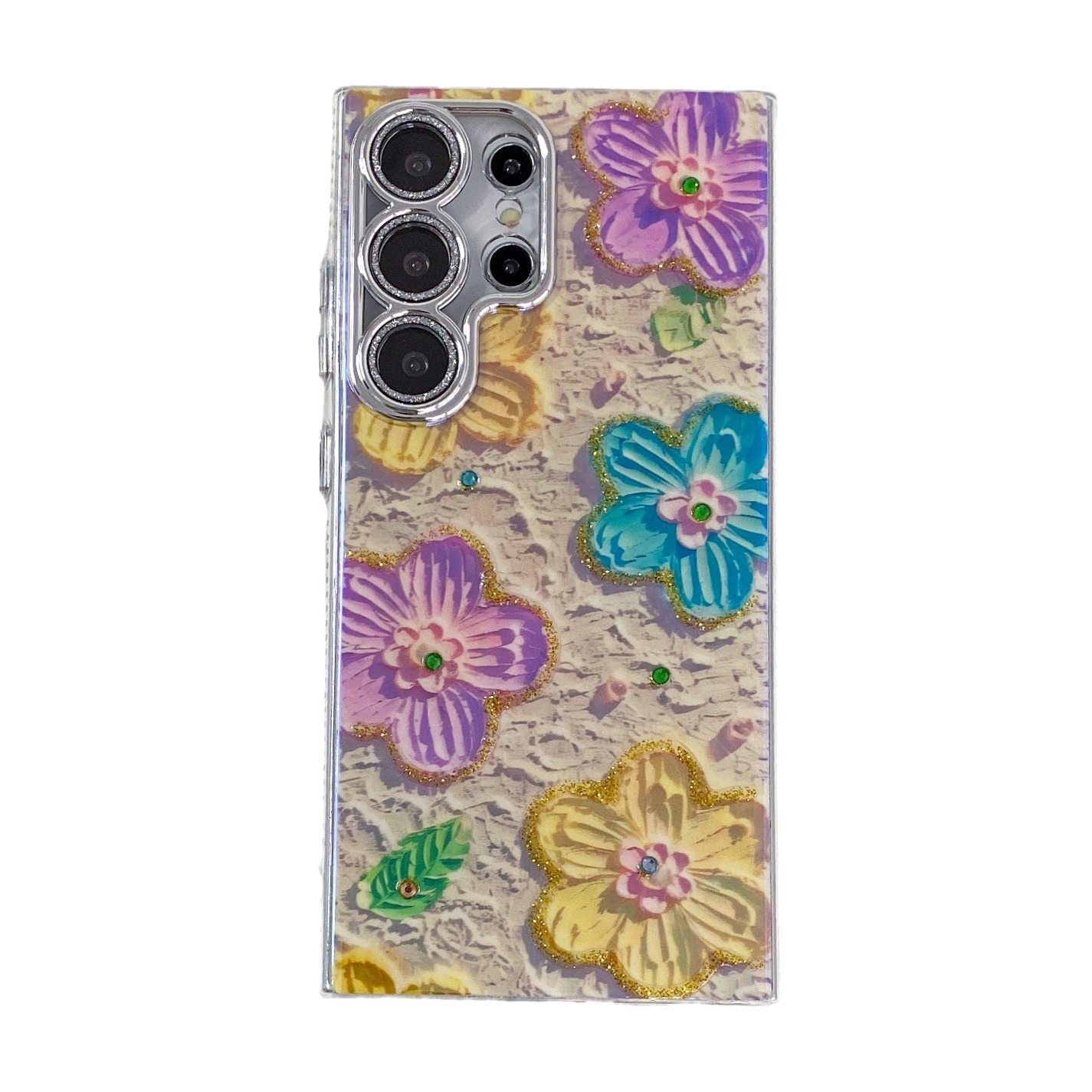 Luxury Rhinestone Oil Painting Flower Phone Case Lens Fine Hole All Inclusive