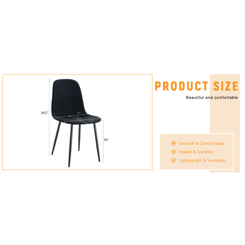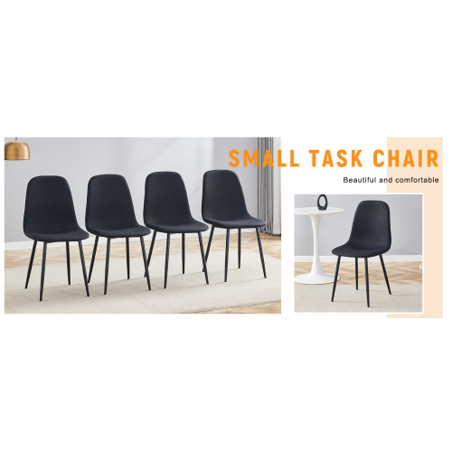 Product Name:Luxury Simple Chair - Set of 4 BLACK Linen-Cotton Material High Resilience Dining Chair with Metal Black Leg.Integral metal leg architecture,Suitable for various interior decoration styles.