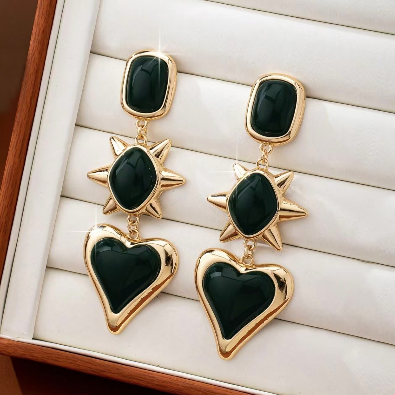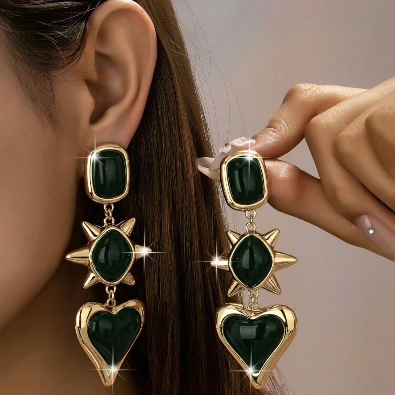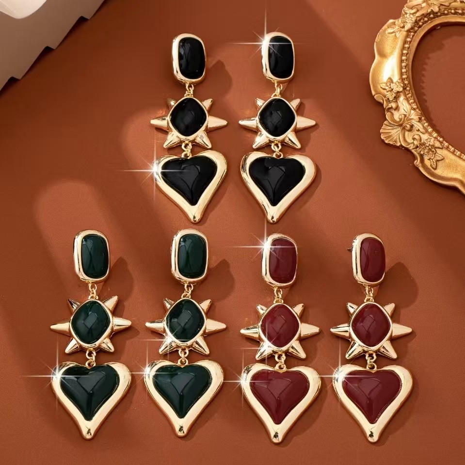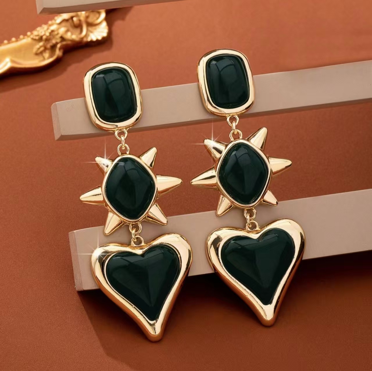 Product information:Colors: Green, Black, Wine Red Target Audience: Women Material: Resin Shape: Heart