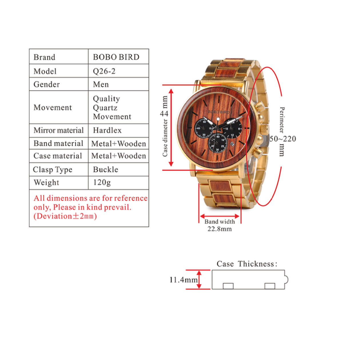 Case Material:Wood & Stainless Steel