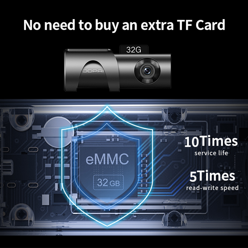 Memory: Built-in eMMC high-speed flash memory, loop recording (does not support TF card expansion).
