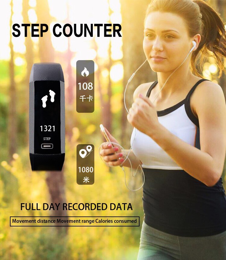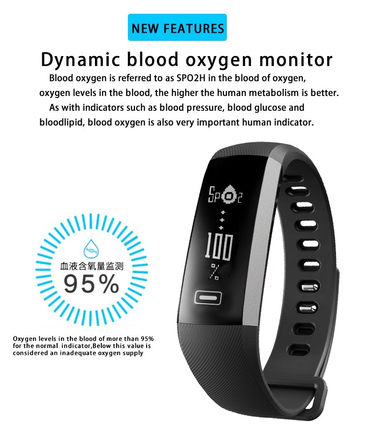 Features: heart rate, step, distance, calories, sleep, call reminder, message reminder, weixin sports, social sharing, remote photography.