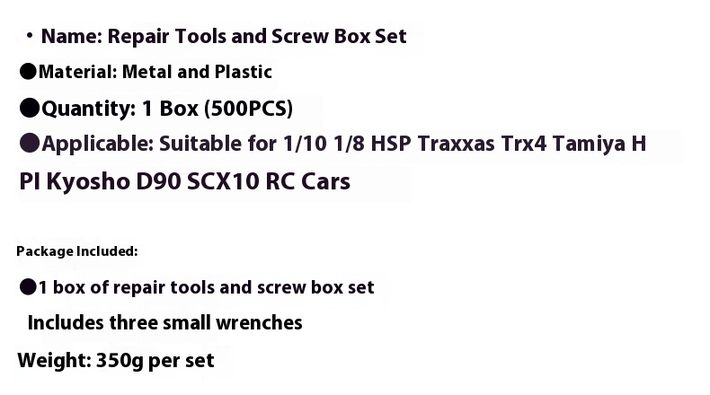 Package includes: 1 box of repair tools and screw box suit, send three small wrenches