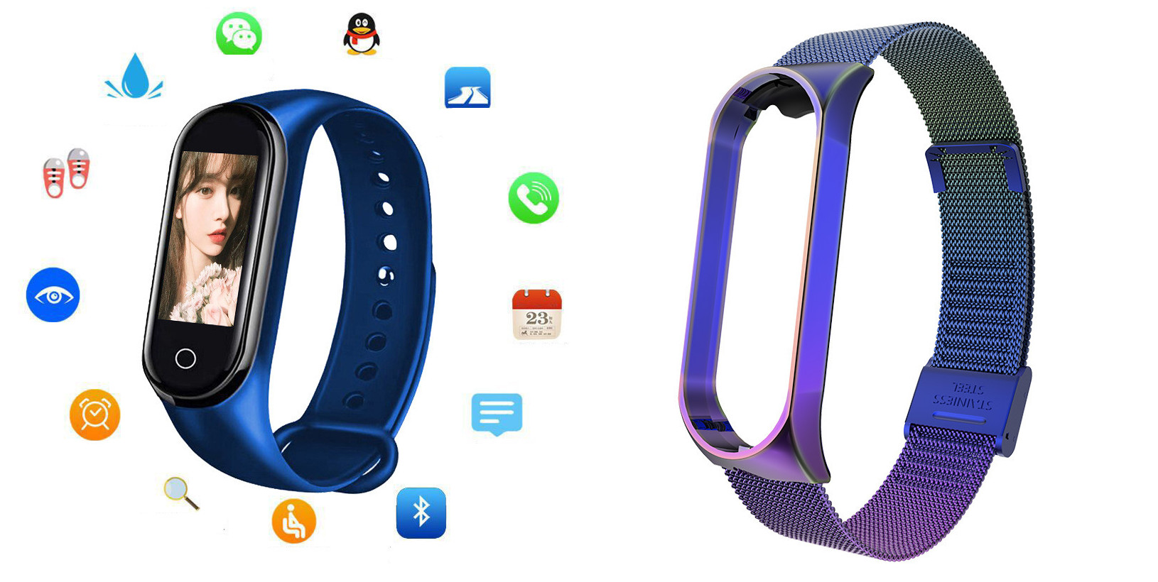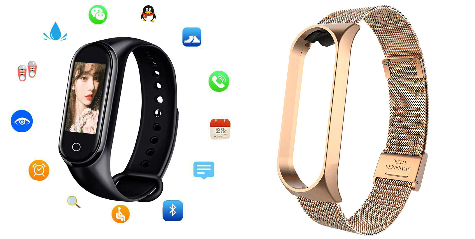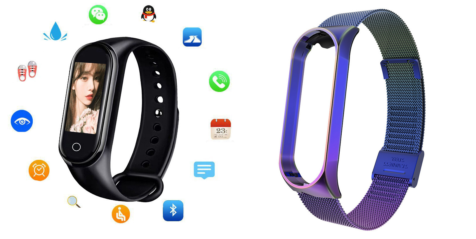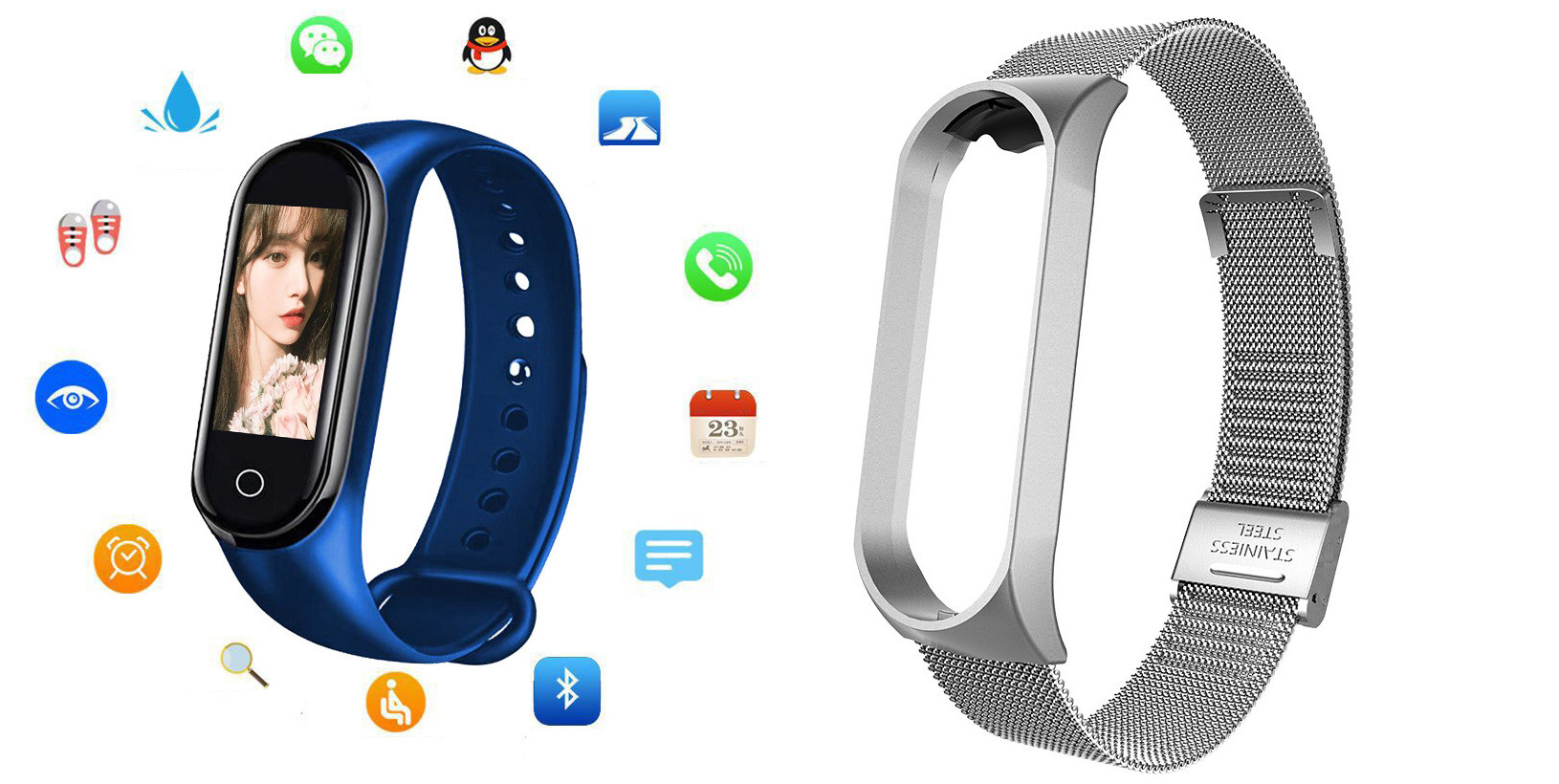 Additional features: step counting, smart reminder, remote Selfie, health monitoring, information push, exercise tracking, sleep analysis