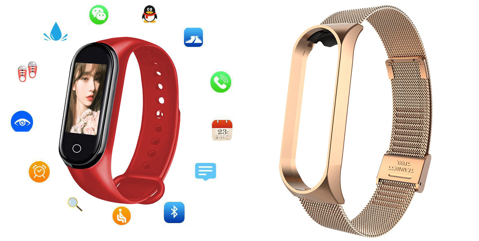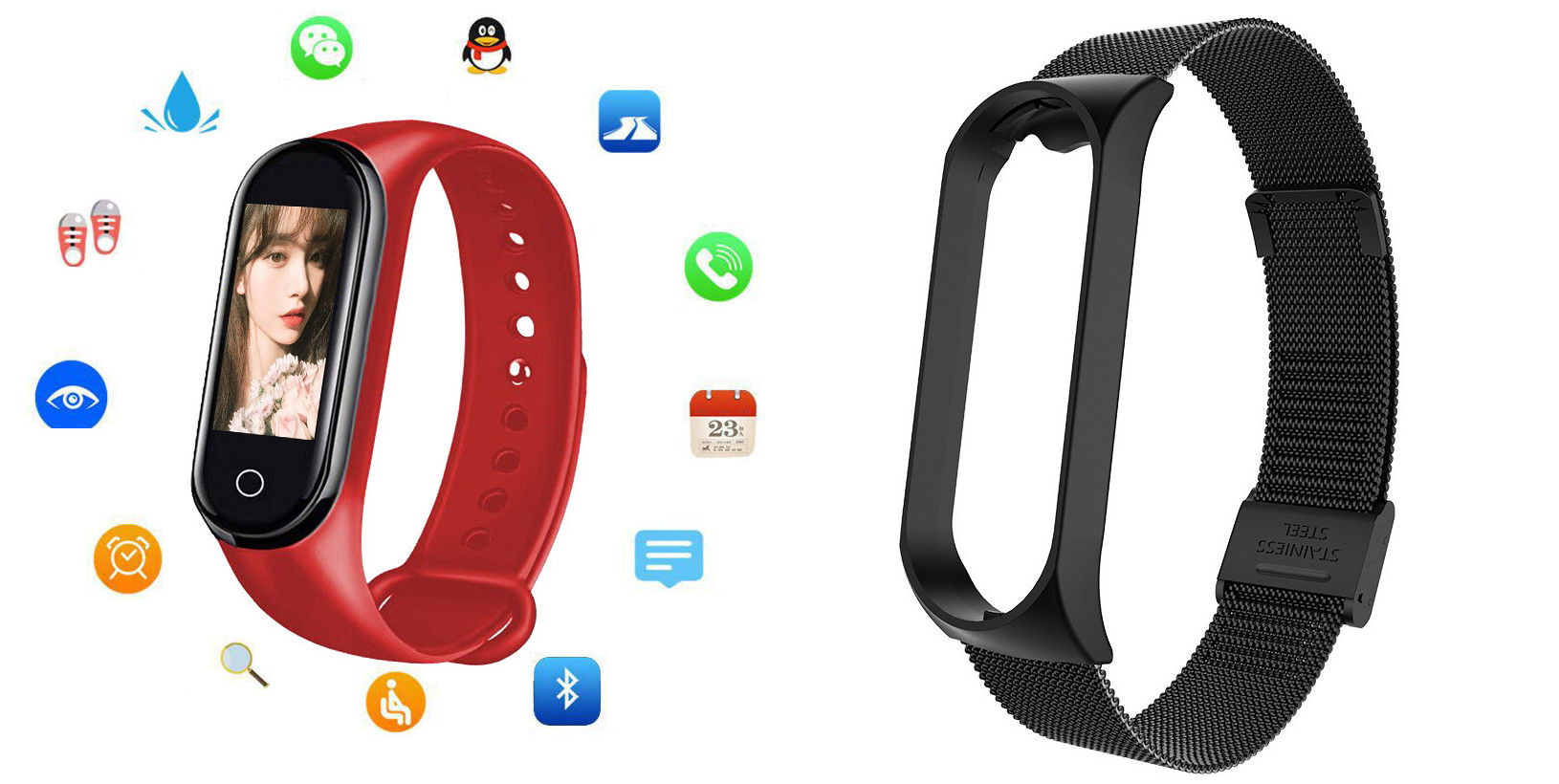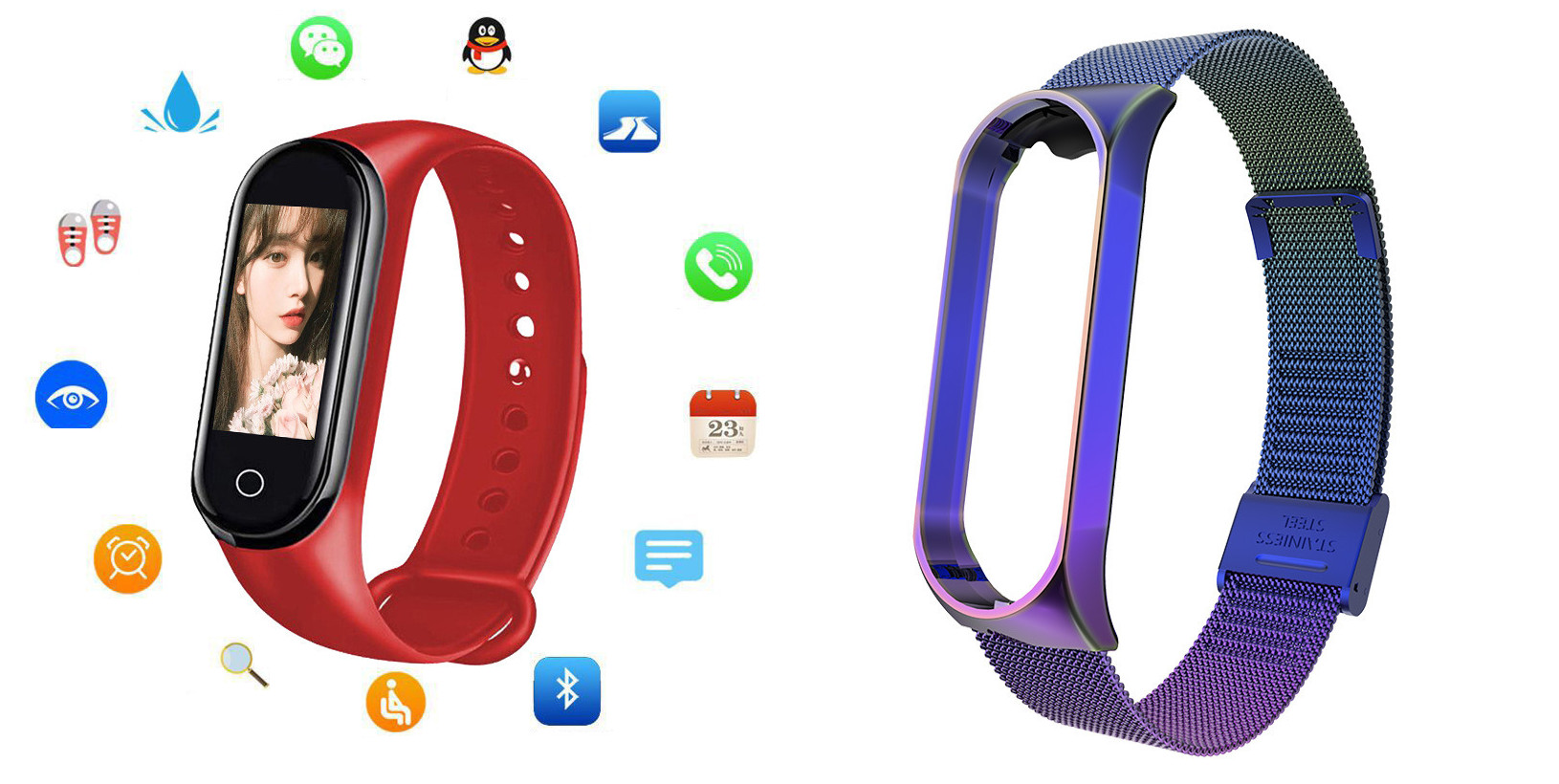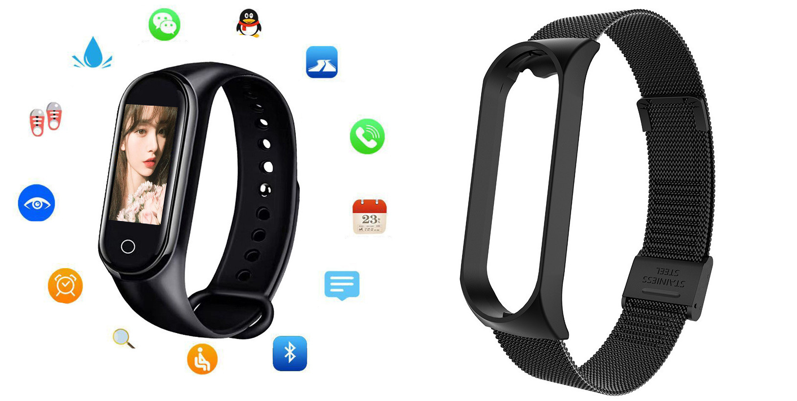 Additional features: step counting, smart reminder, remote Selfie, health monitoring, information push, exercise tracking, sleep analysis