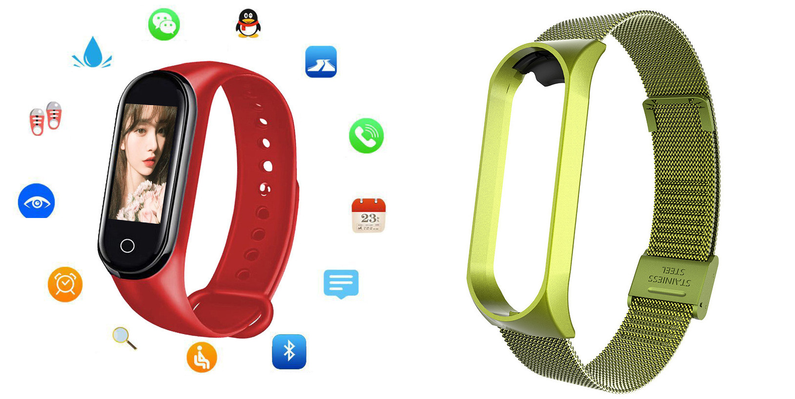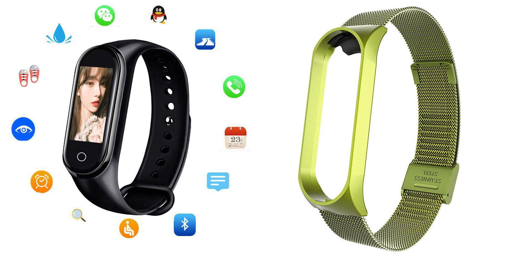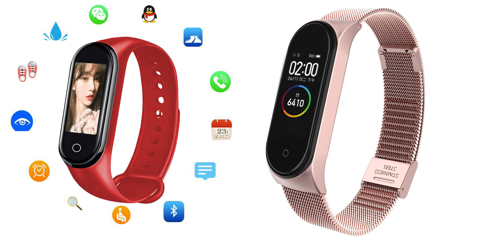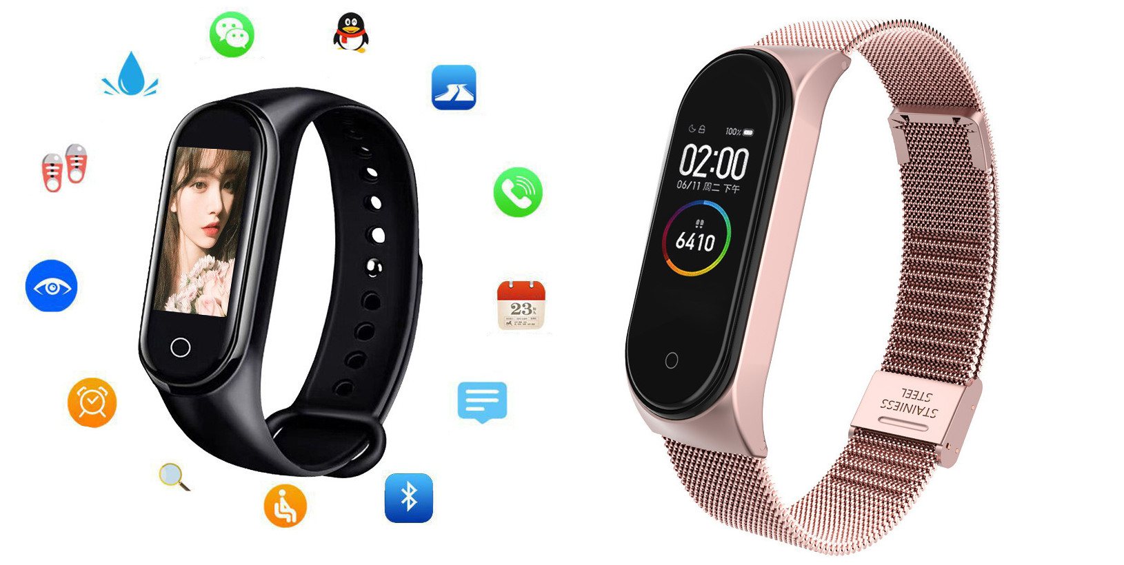 Additional features: step counting, smart reminder, remote Selfie, health monitoring, information push, exercise tracking, sleep analysis