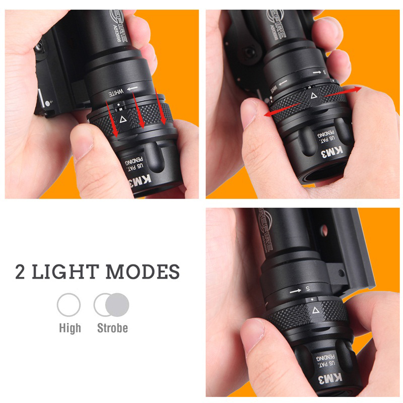 Demonstration of switching between constant light and flashing function, hold the rotating ring on the head of the flashlight, push forward and then rotate to restore the position to adjust the switching between functions