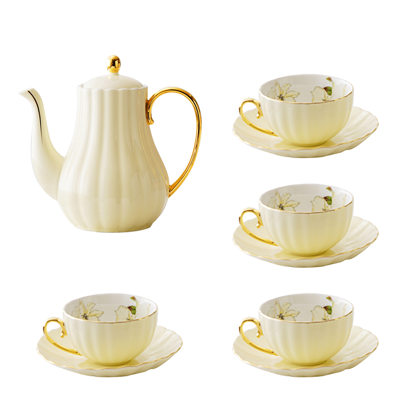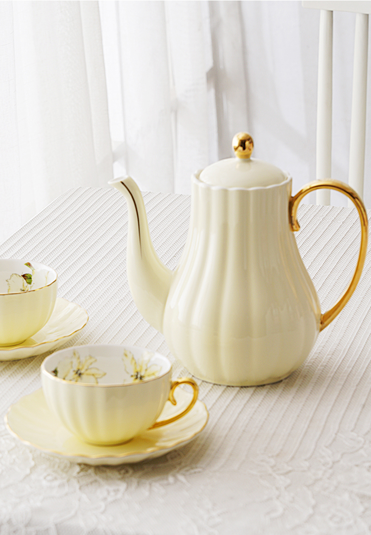 Color classification: yellow macaron teapot, yellow macaron teapot+2 gardenia pumpkin cups and saucers, yellow macaron teapot+4 gardenia pumpkin cups and saucers