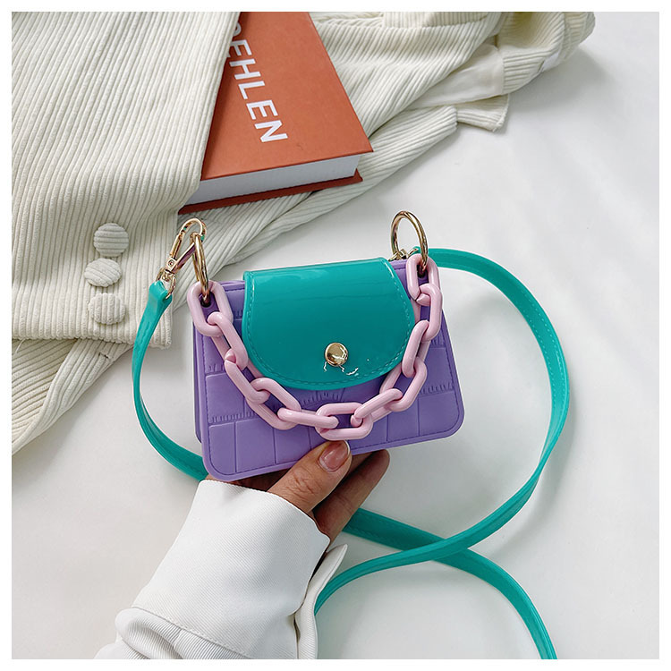 Macaron Contrast Color Jelly Bag Shoulder Messenger Bag Fashionable Mini Square Bag