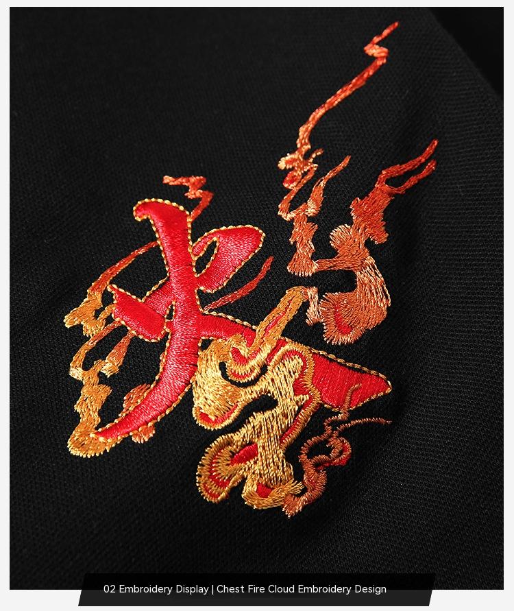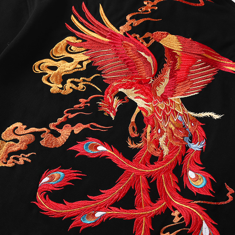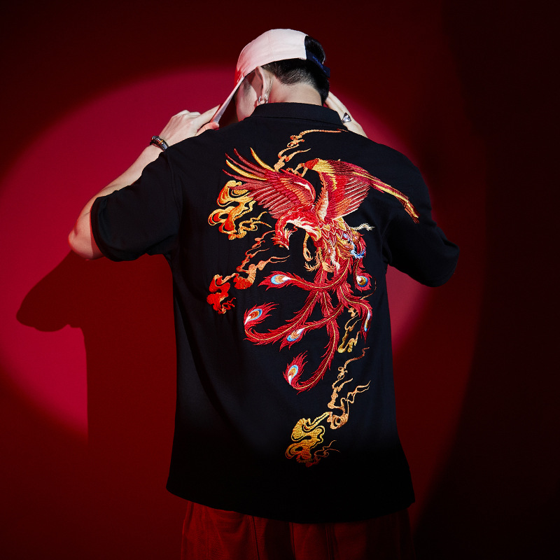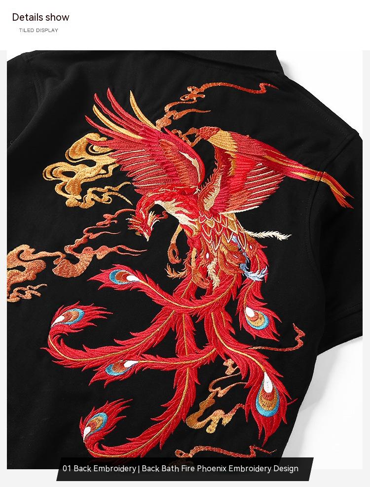 Machine Embroidery Phoenix Pure Cotton Polo Collar Top
