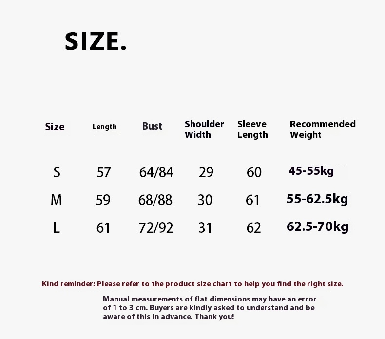 1. Asian sizes are 1 to 2 sizes smaller than European and American people. Choose the larger size if your size between two sizes. Please allow 2-3cm differences due to manual measurement. 2. Please check the size chart carefully before you buy the item, if you don't know how to choose size, please contact our customer service. 3.As you know, the different computers display colors differently, the color of the actual item may vary slightly from the following images.