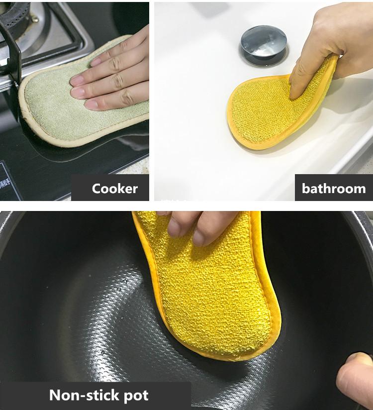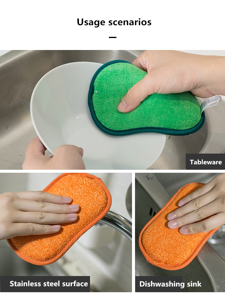 1. High-quality microfiber cloth on one side, scrubber on the other. The soft microfiber surface erases hard dirt effectively, absorbing moisture after cleaning.