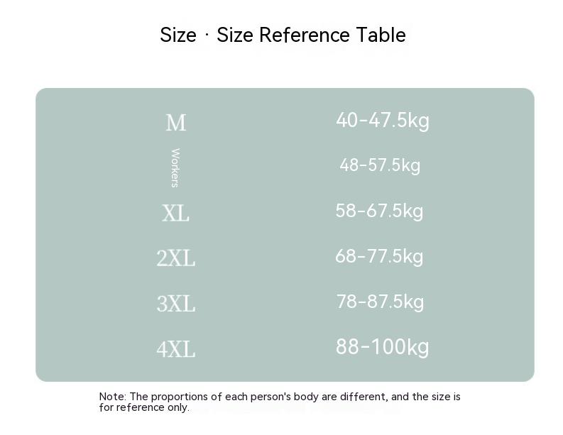 Size: M [40.00 kg-47.50 kg], L [47.50 kg-57.50 kg], XL [57.50 kg-67.50 kg], XXL [67.50 kg-77.50 kg], 3XL [77.50 kg-87.50 kg], 4XL [87.50 kg-100.00 kg]]