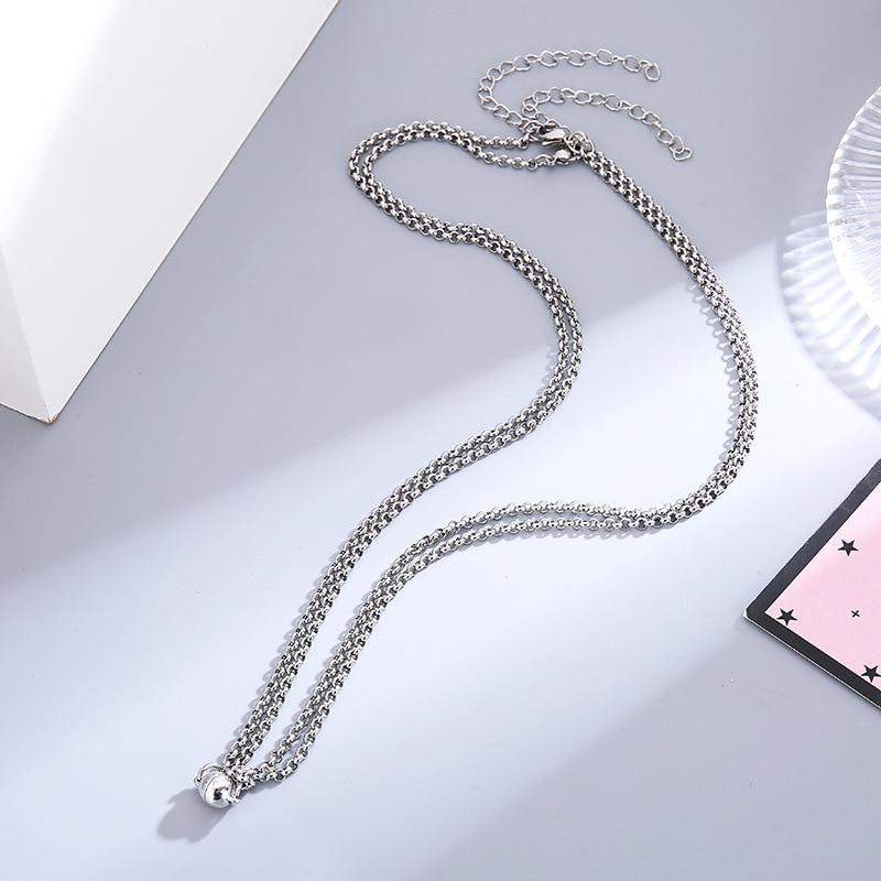 Color: (A) a pair of magnetic pendant necklaces, (B) a pair of attracting necklaces (positive), (C) a pair of attracting necklaces (negative)