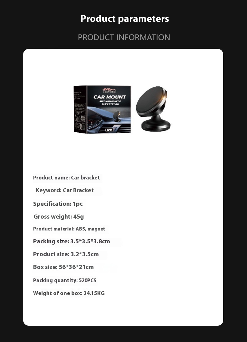 Product Details:Size: 3.2*3.5cmType: Mobile phone holderComposition: ABS, magnetPacking material: PETPackage contents:Phone stand X1